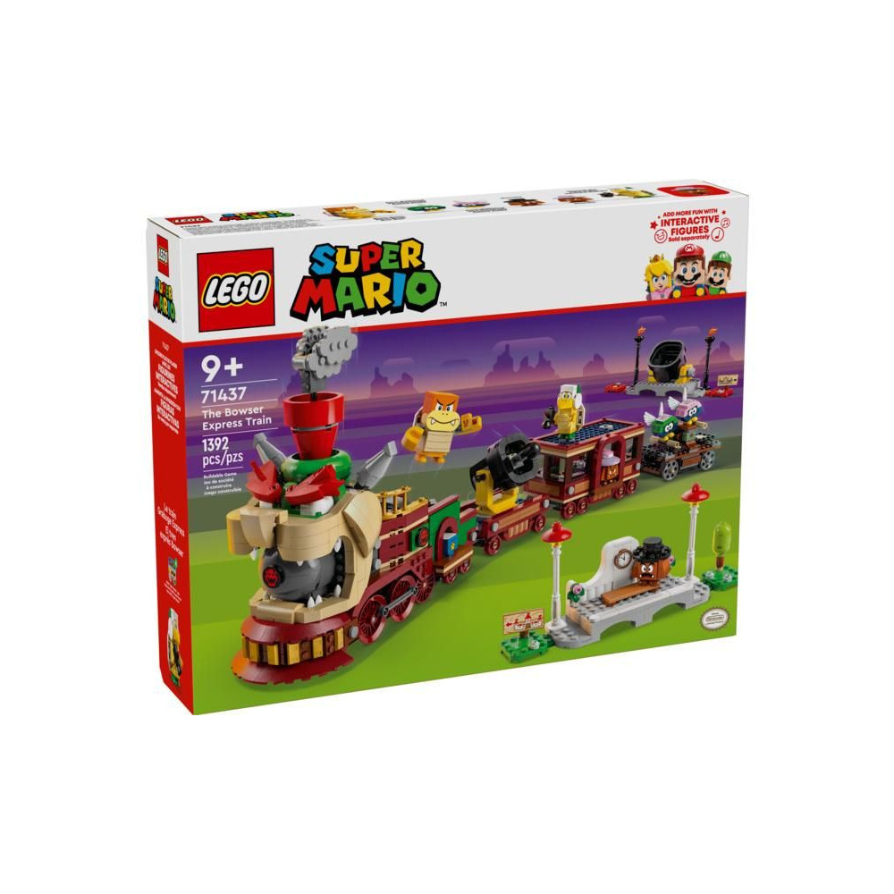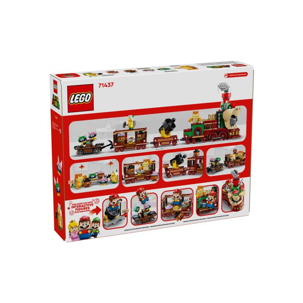 Adj hozzá egy LEGO® Mario™, LEGO® Luigi™ vagy LEGO® Peach™ figurát (a 71439, 71440 vagy 71441 készletből - külön megvásárolható) az interaktív játékhoz. Ugorj be velük a vonatszerelvénybe, és kergessétek együtt a vonatot, működtessétek a mozdony forgó peronját, és aktiváljátok a rugós ágyús kocsi kilövőjét. Ha minden ellenséget legyőztetek, meghallhatod a duda hangját, amikor Bowser gyorsvonatával behajtotok az állomásra.
