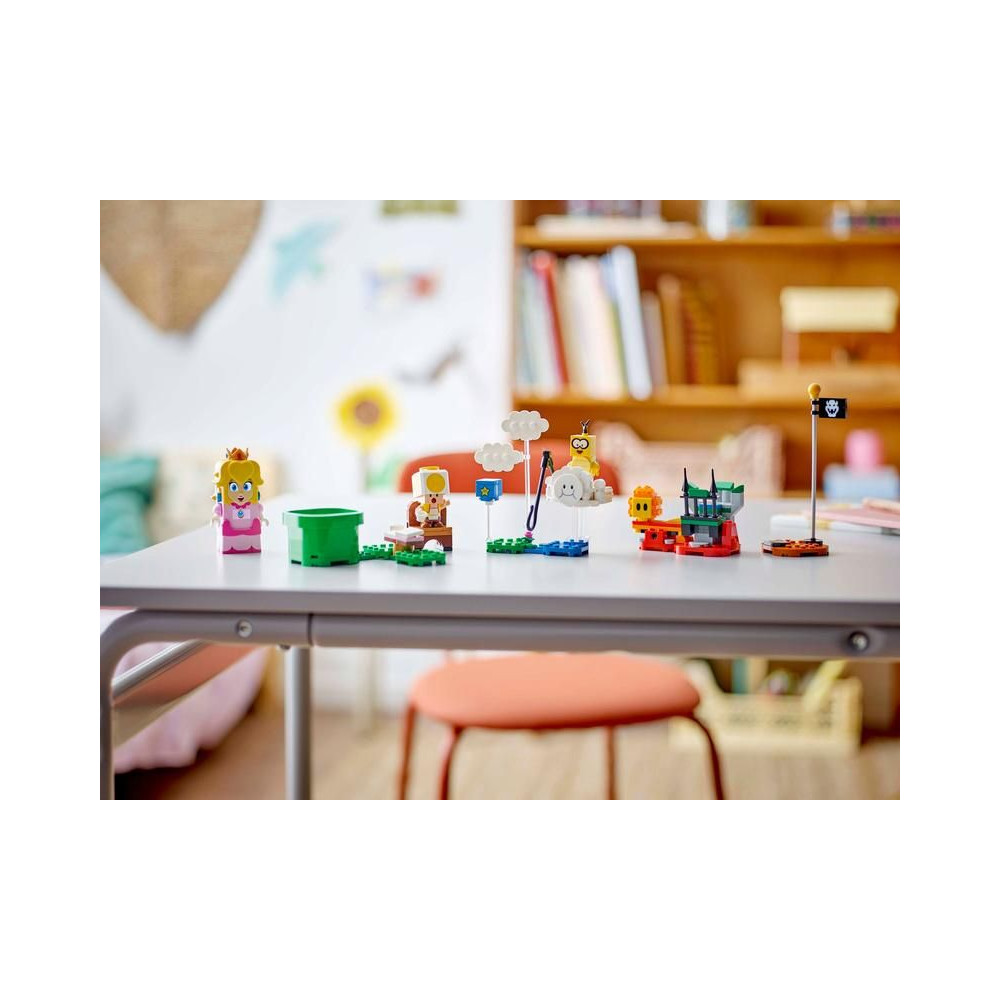 - Hercegnő készlet szórakoztató kalandokhoz interaktív LEGO® Peach™ - Tarts piknik teapartit LEGO Peach-csel, és segíts neki repülni Lakita felhőjén, hogy megmentse Sárga Varangyot!