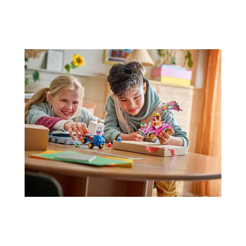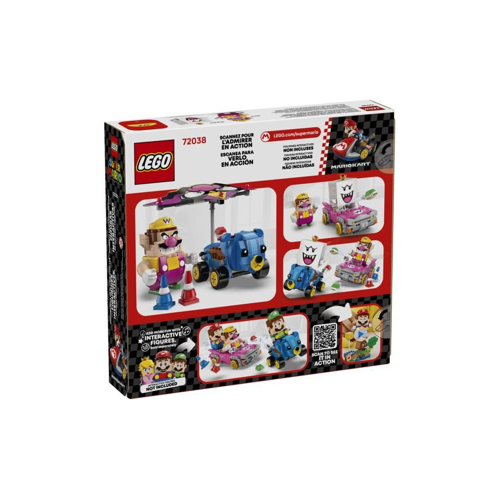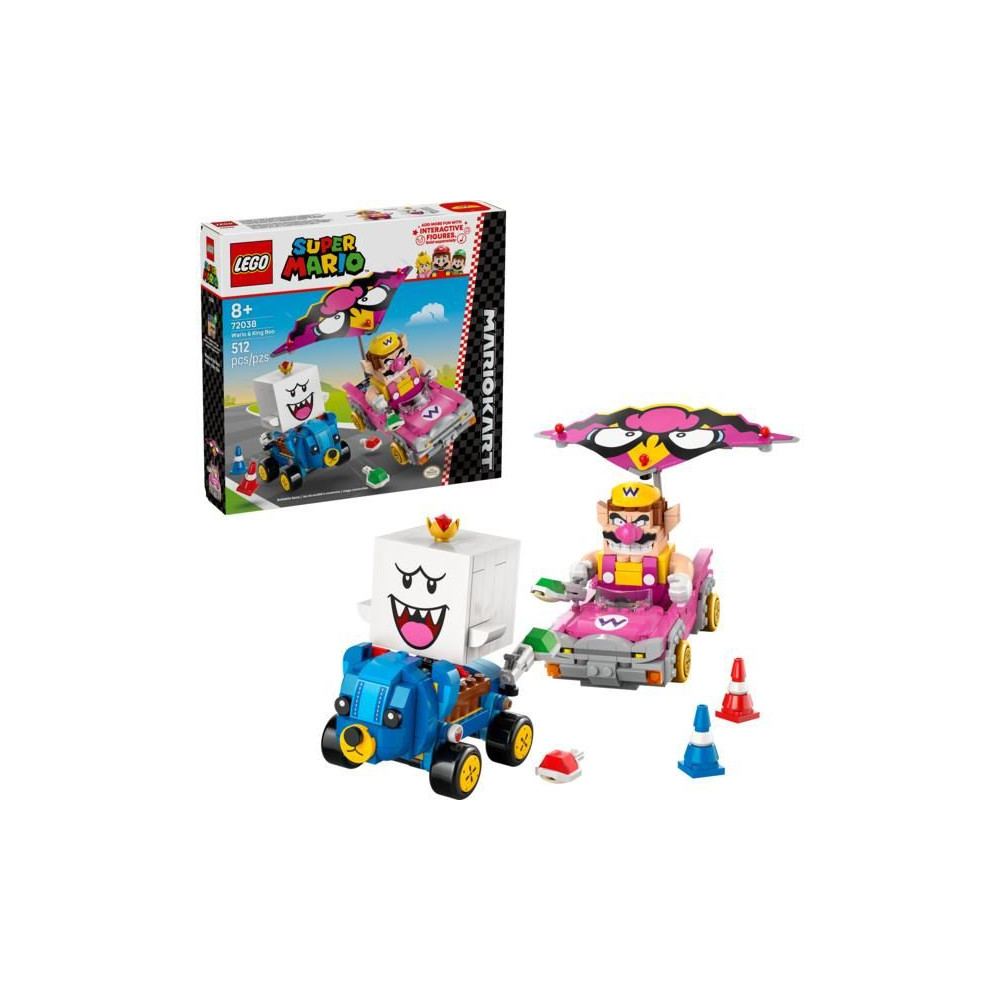 Versenyezz, sodródj, repülj és harcolj ezzel a LEGO® Super Mario™ (72038) Mario Kart™ - Wario és King Boo készlettel. A készlet szórakoztató ajándék fiúknak, lányoknak és általános játékosoknak 8 éves kortól, és 2 LEGO Super Mario figurát tartalmaz, a népszerű Badwagon és Teddy Buggy kockákból készült modelljeit és 2 közlekedési bóját. Mindegyik gokart gránátvető és sodródó funkciókkal rendelkezik, a Badwagon pedig egy levehető siklóernyővel rendelkezik, amely a Teddy Buggy-hoz rögzíthető.