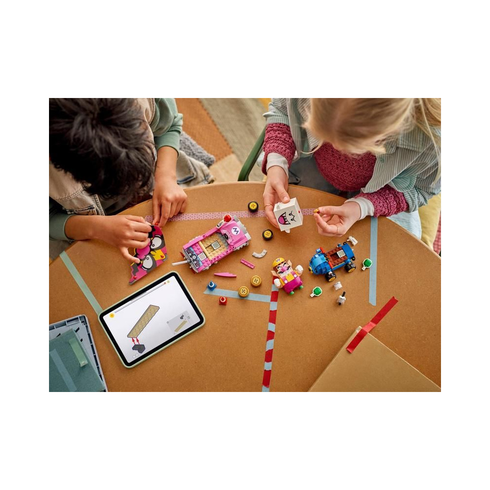 - Interaktív játék – Vezesd a Badwagont vagy a Teddy Buggyt LEGO® Mario™, LEGO® Luigi™ vagy LEGO® Peach™ figurákkal (a figurák nem tartozékok), és aktiváld a Mario Kart™ dudálásának, sodródásának és egyebek hang- és vizuális effektusait.