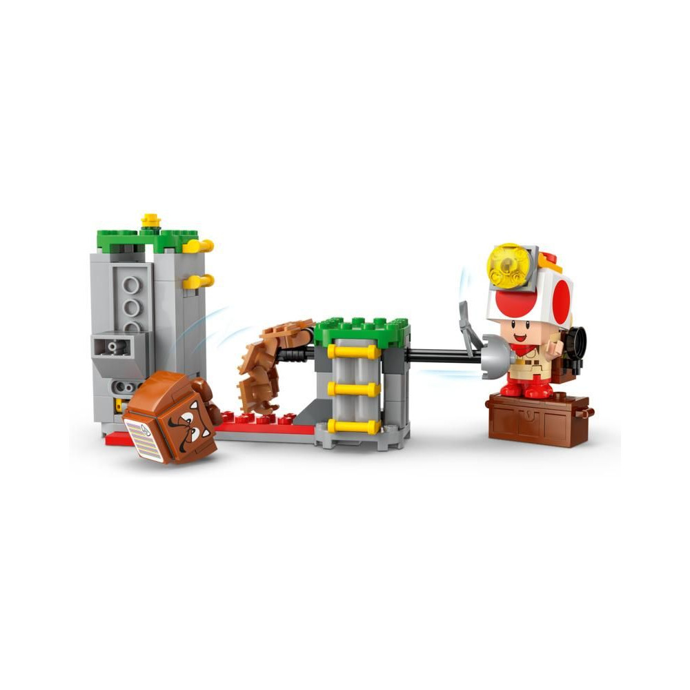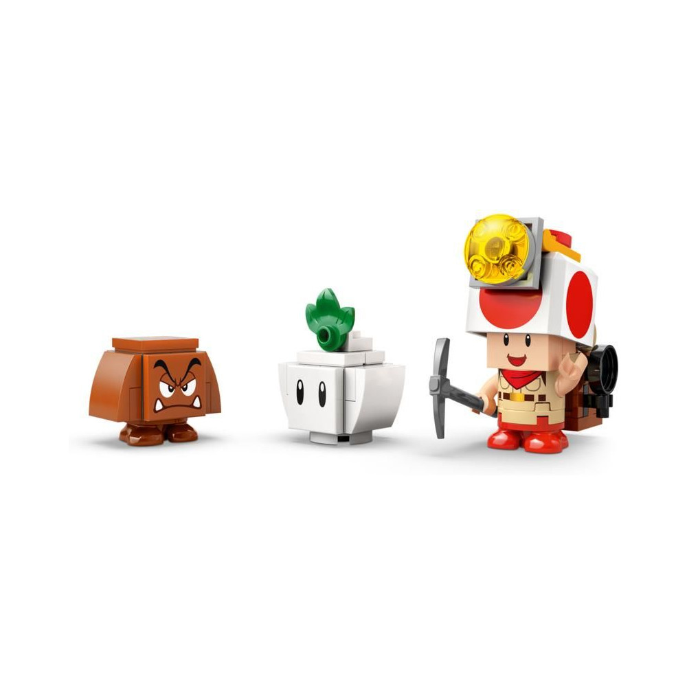 - 3 LEGO® Super Mario™ figura a szórakoztató játékhoz – Ez a Nintendo® LEGO készlet tartalmazza Toad kapitányt, egy fehérrépa és egy Goomba figurát, egy összerakható hátizsákot, valamint egy csákányt, serpenyőt és egy gyémánt kiegészítőt.