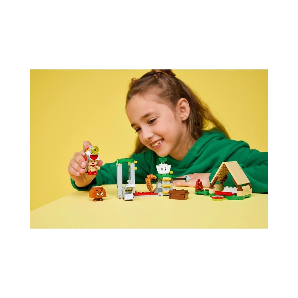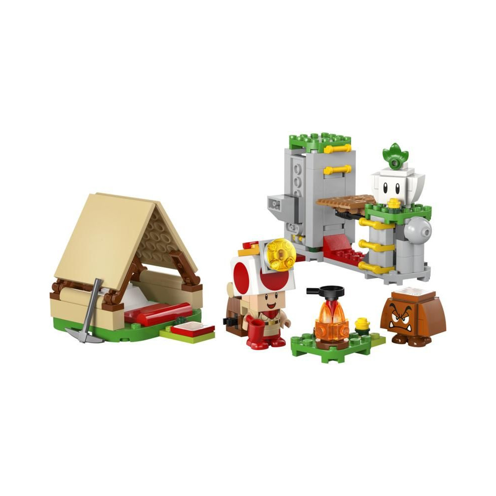 - LEGO® Super Mario™ szórakoztató készlet gyerekeknek – Játssz rengeteget Toad kapitánnyal és táborával, építs téglasátrat és tábortüzet, kincsre vadássz, lerombolj egy hidat, győzd le az ellenségeket és még sok minden mást!