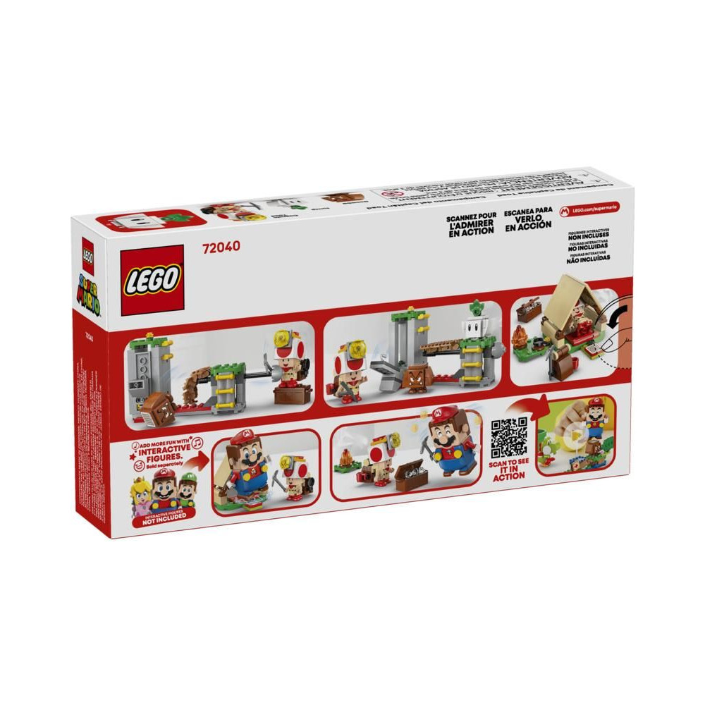 Fedezd fel Toad kapitány táborát és találj rejtett kincseket ezzel a szórakoztató LEGO® Super Mario™ gyermekkészlettel (72040). Az építőkészlet fantasztikus ajándék fiúknak, lányoknak és 6 éves kortól rajongóknak, és tartalmaz egy megépíthető sátrat tábortűzzel Toad kapitány számára, egy összecsukható hidat, rejtett gyémántokat és egy kincsesládát.