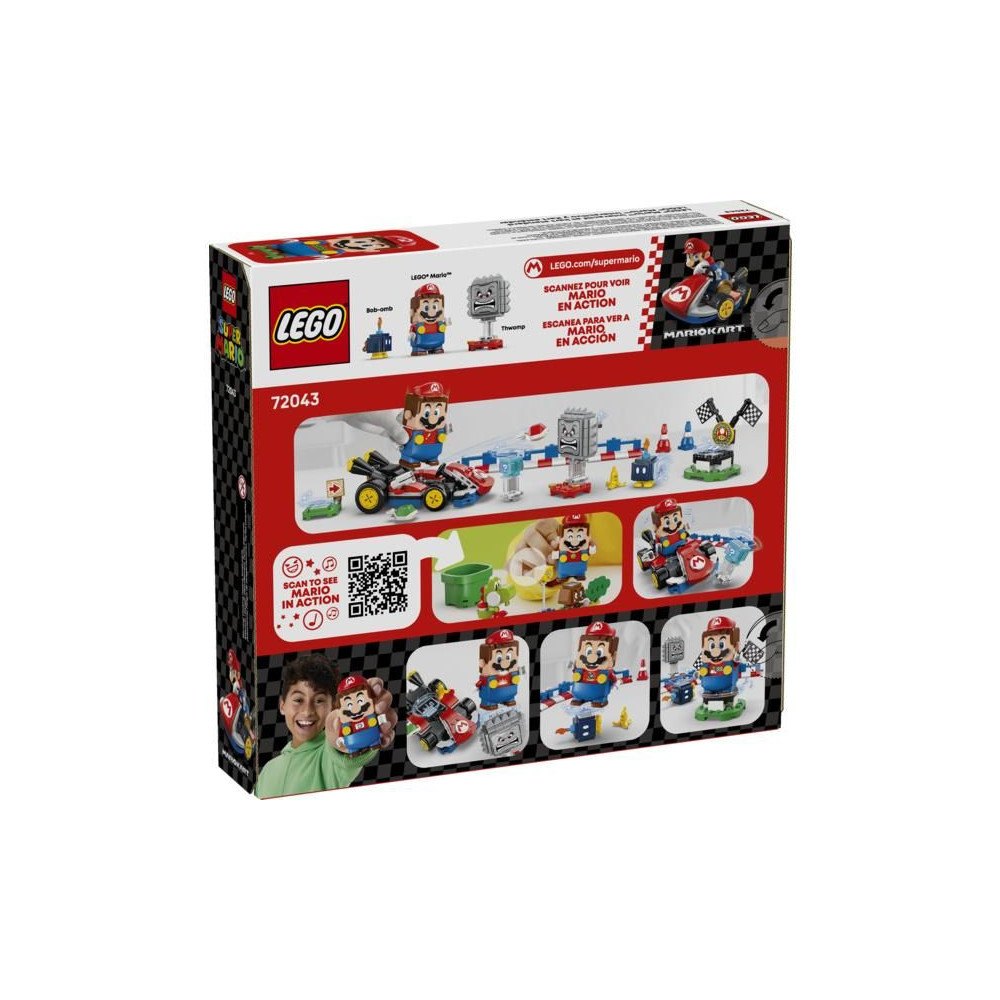 Ezzel a Mario Kart™ építőkészlettel (72043) a gyerekek kockákból építhetik meg saját versenypályájukat, és interaktív versenyeken vehetnek részt LEGO® Marioval együtt a Standard Kartban. A fantasztikus LEGO® Super Mario™ építőkészlet 7 éves kortól fiúknak, lányoknak és játékosoknak tartalmaz egy interaktív LEGO Mario figurát és egy Standard Kartot sodródó és lövedéklövő funkciókkal a szórakoztató versenyzéshez és játékhoz. A versenypálya tartalmaz egy rajtpályát, rögzíthető korlátokat, közlekedési bójákat és egy győztes kört is. Vezess egy Standard Kartot LEGO Marióval, és aktiváld a Mario Kart hangjait és vizuális effektjeit, szerezz digitális jutalmakat a tárgydobozból, győzd le Bob-ombot és Thwompót, és nézd, ahogy LEGO Mario reagál a zöld és piros LEGO csempékre. Fedezd fel a LEGO Super Mario: Mario Kart készletek teljes kínálatát (külön megvásárolható), és szerezz további járműveket és karaktereket a még több szórakozáshoz. Az építési útmutatót a dobozban vagy a LEGO Super Mario alkalmazásban találod. Ez a készlet 278 darabot tartalmaz.