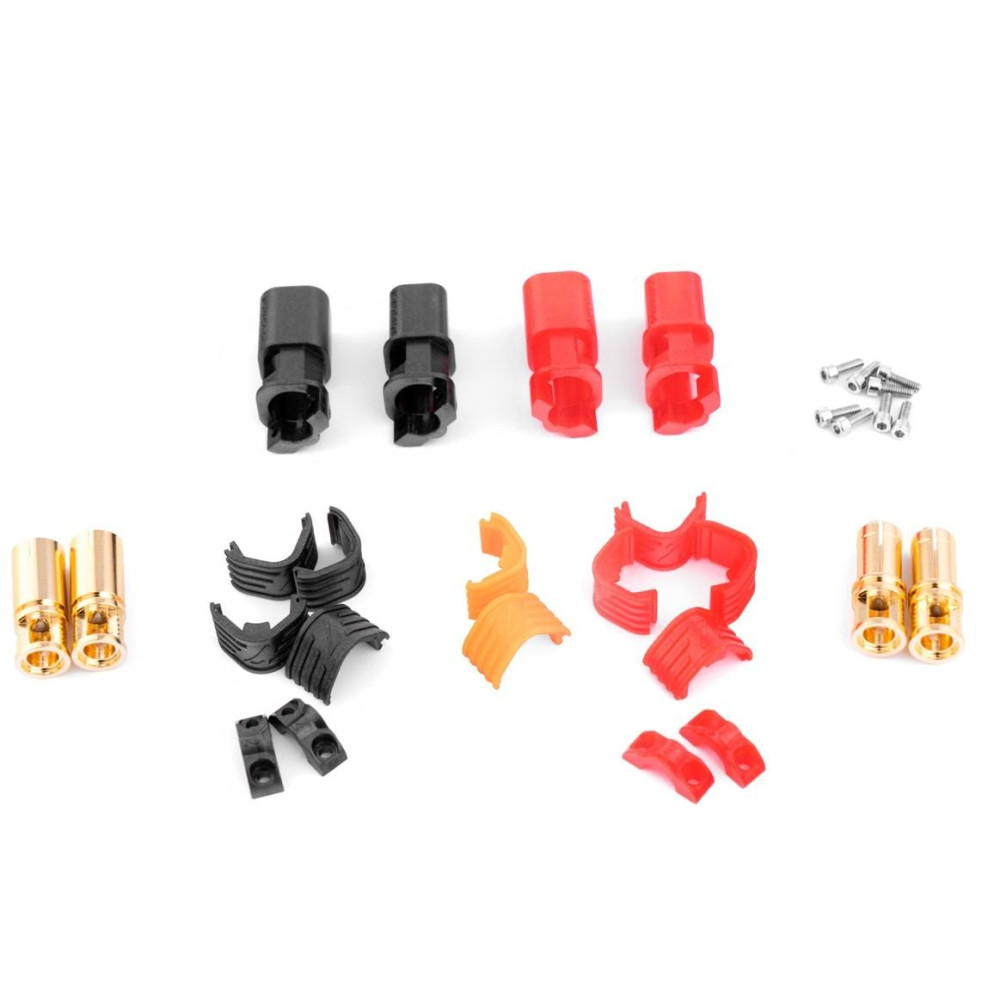 Aranyozott 7 mm-es csatlakozók házzal 5-8,4 mm2 (8-10 AWG) kábelhez. Állandó áram 240A, csúcsáram 280A. Max. 60 V egyenáram. Forrasztási lehetőség. 2 pár darabos csomag (1 piros és 1 fekete).