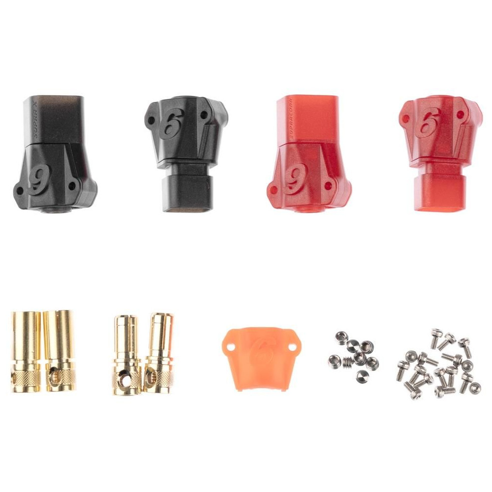 Aranyozott 6 mm-es csatlakozók házzal 8,4 mm2 (8 AWG) kábelhez. Állandó áram 240 A, csúcs 280 A. Max. 60 V DC. Forrasztás nélküli változat - a kábel rögzítése két imbuszcsavarral történik. 2 páros csomag. Kompatibilis a szikramentes S6 6808 ASST (REB6808ASSTS6P2) csatlakozókkal.
