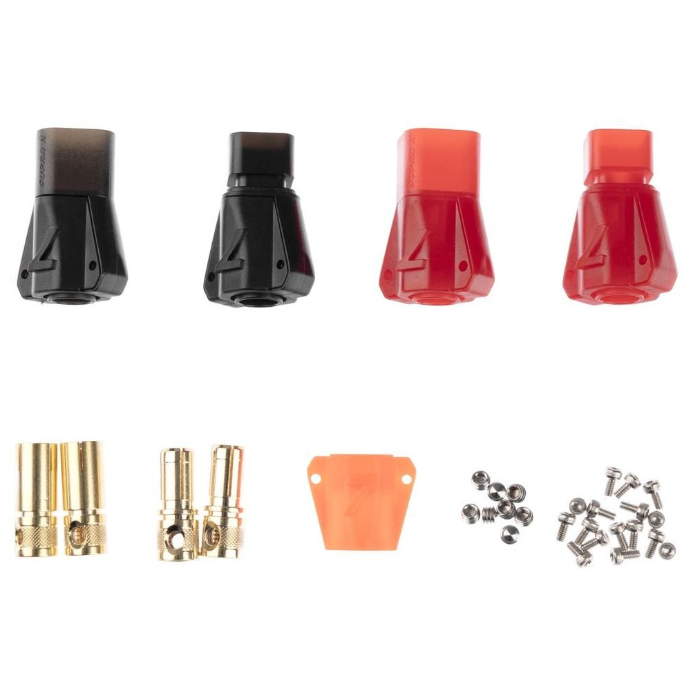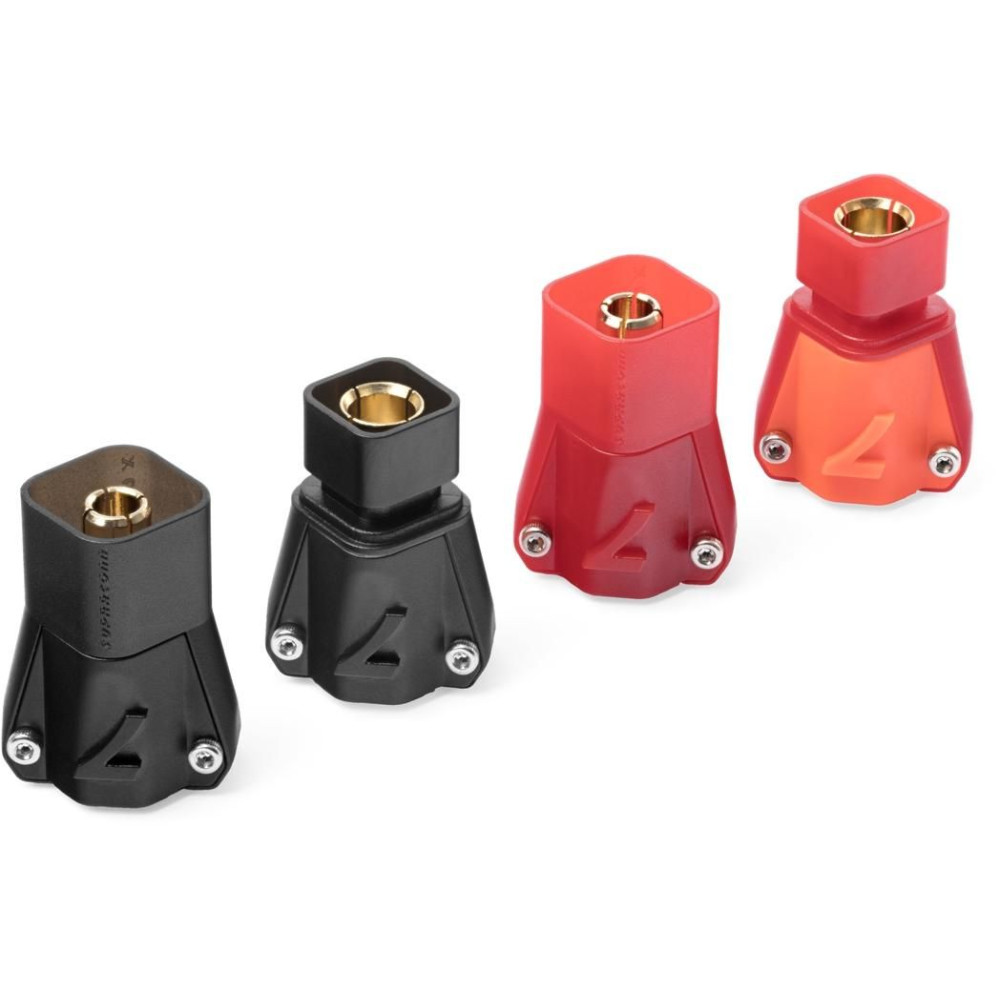 Aranyozott 7 mm-es csatlakozók házzal 8,4 mm2 (8 AWG) kábelhez. Állandó áram 280 A, csúcs 320 A. Max. 60 V DC. Forrasztás nélküli változat - a kábel rögzítése két imbuszcsavarral történik. 2 páros csomag. Kompatibilis a szikramentes S6 7808 ASST (REB7808ASSTS7P2) csatlakozókkal.