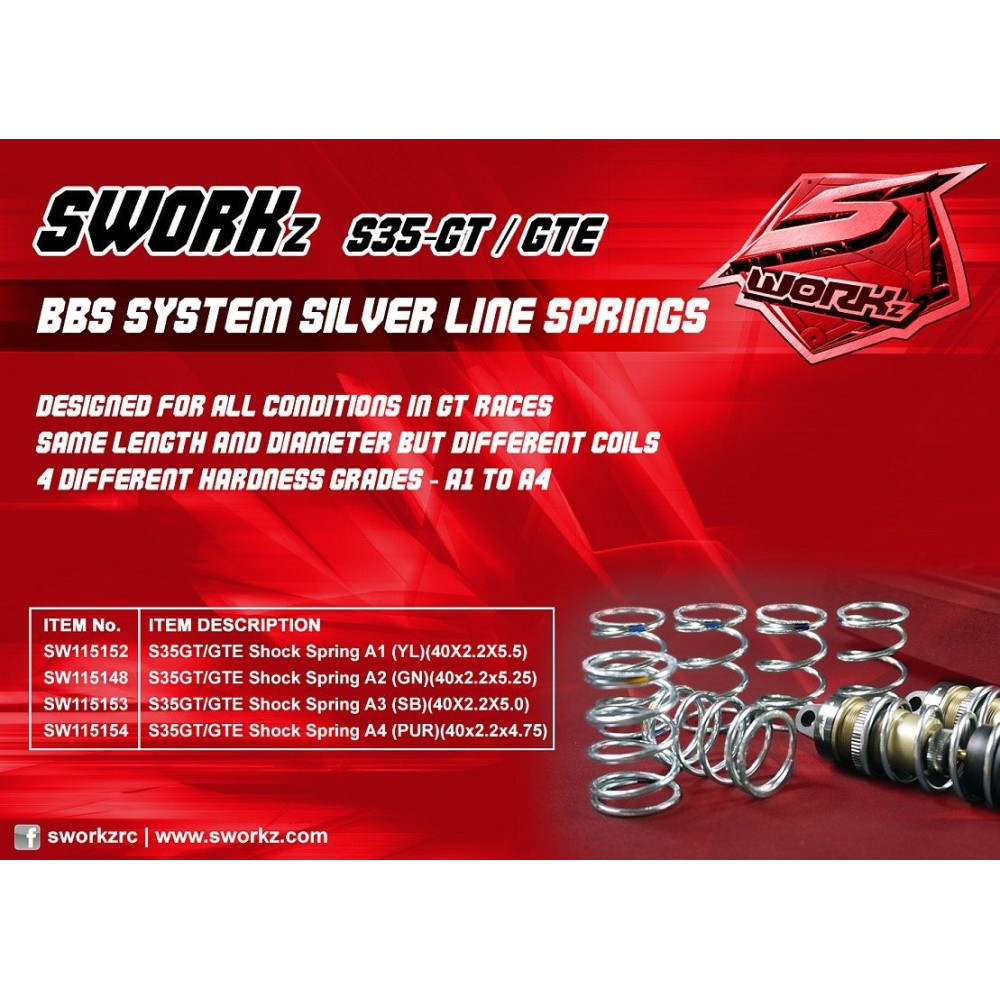 SWORKz GT COMPETITION olajos lengéscsillapító rugók, A1 (40x2.2x5.5), sárga, 2 db.