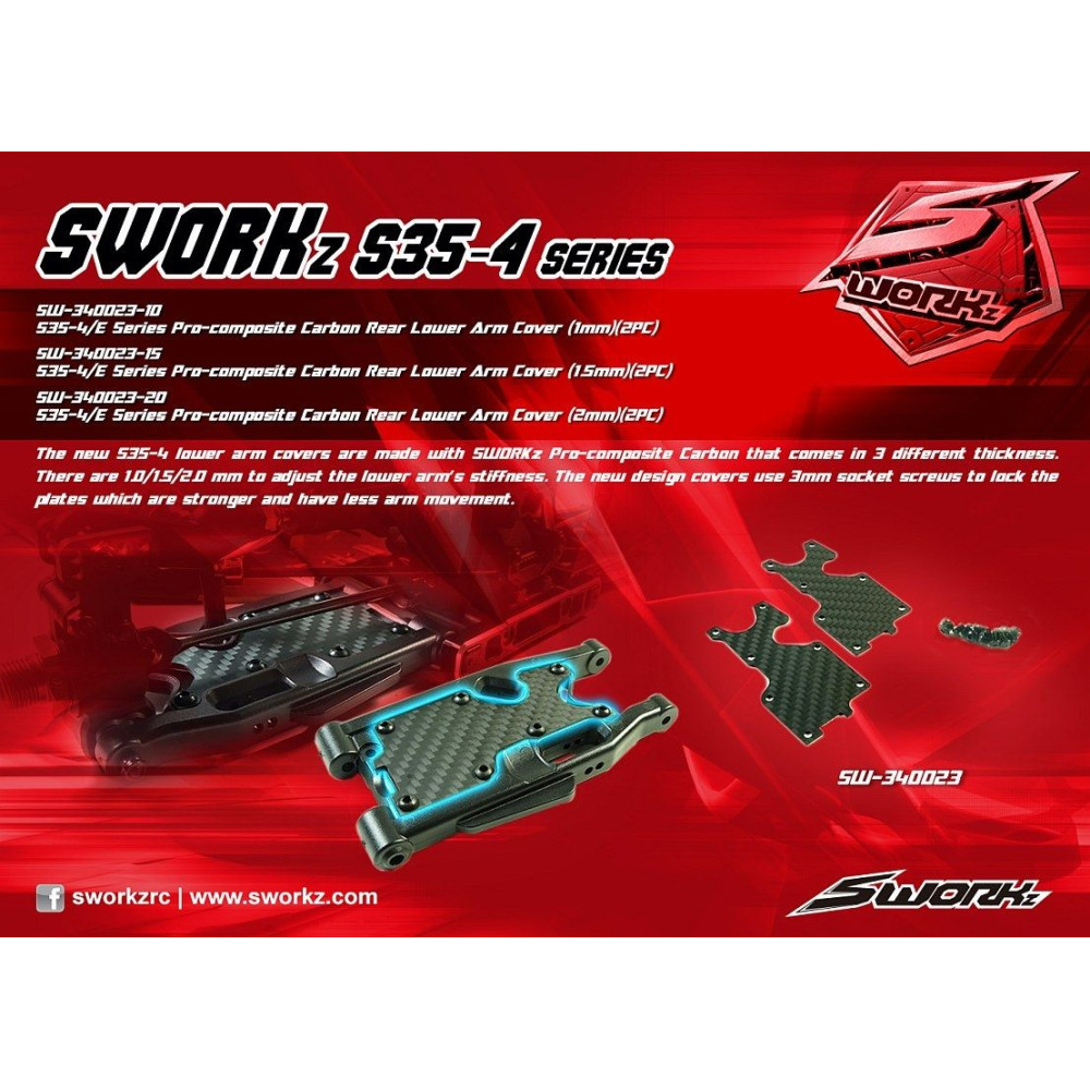 SWORKz szénszálas hátsó alsó kormányrúd, 2,0mm, csavarokkal együtt, 2 db.