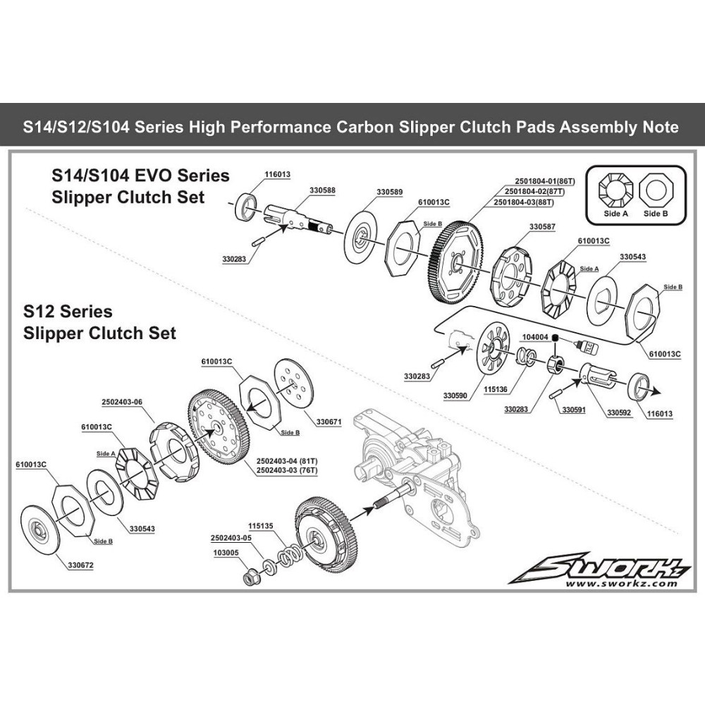SWORKz kuplungbetét High Performance, karbon, 3 db.
