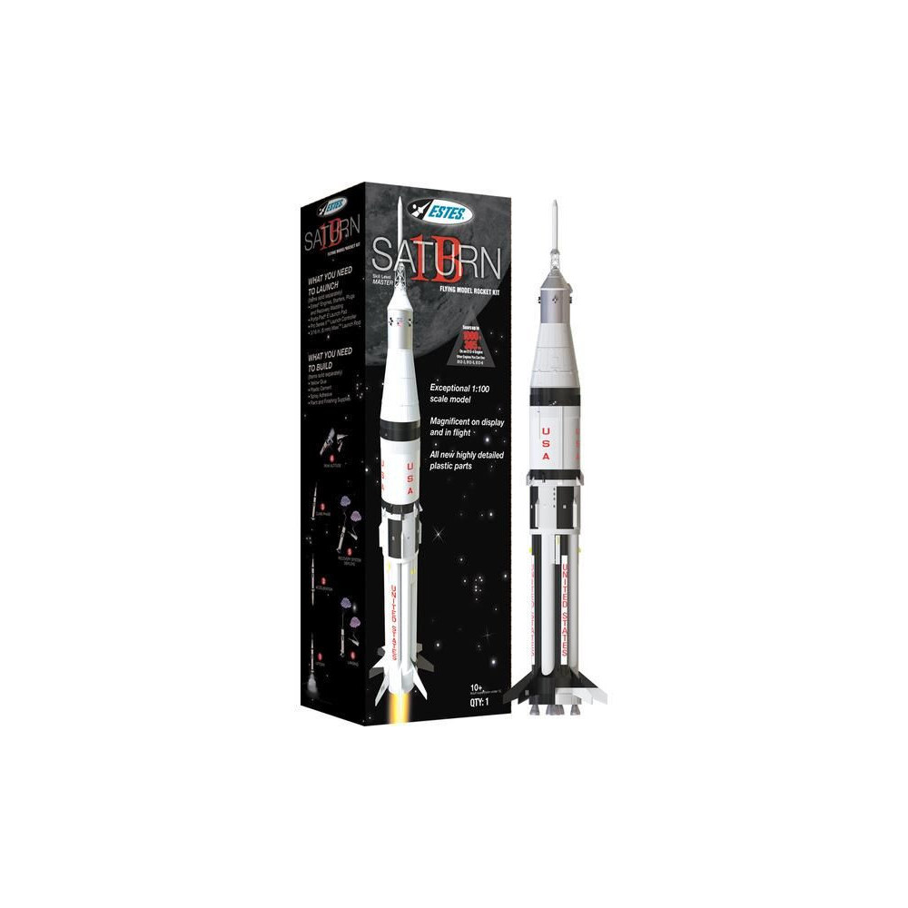 Modell Estes Saturn 1B készlet, 1:100 méretarány. A Saturn 1B rakéta modellje az Apollo-korszakból, később a Skylab hordozórakétájaként. A modellt C, D, E sorozatú rakétahajtóművek hajtják, és akár 305 méteres magasságot is elérhet. A rakéta részeinek biztonságos visszatérése két ejtőernyőn.