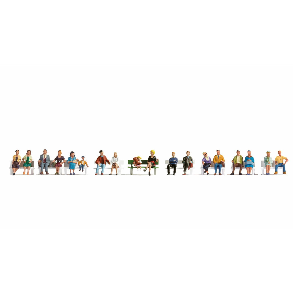 Sada XL "Sediaci ľudia" obsahuje sediace figúrky pre každú scénu. Nájdete tu teda rodičov, ktorí si sadli na krátku prestávku so svojimi deťmi, obchodníkov, ktorí majú dohodnuté stretnutie, a chodcov, ktorí si chcú na chvíľu vychutnať výhľad.