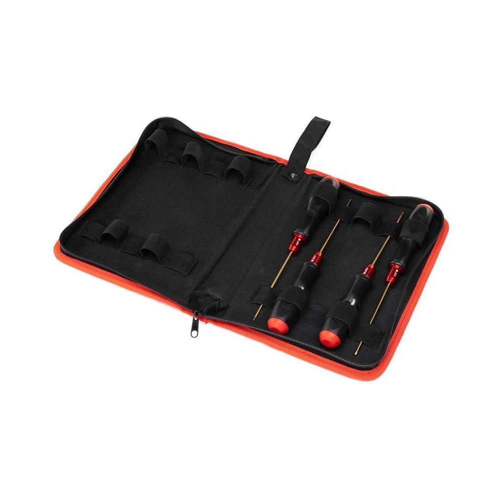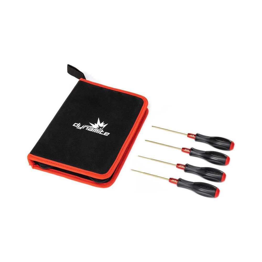 4 db hatszögletű hatszögletű csavarhúzó készlet US: .050" , 1/16", 5/64" a 3/32". A Dynamite készlet ergonomikus kialakítású és jól néz ki! Formázott műanyag fogantyúval rendelkezik, amely forgatható hegyű a kényelmes csavarhúzáshoz. Logózott szerszámtáska.