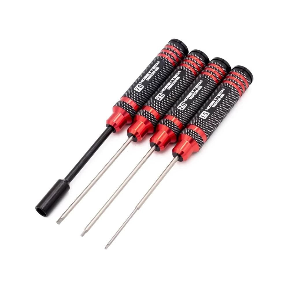 Szerszámkészlet, imbuszos csavarhúzó (1,5, 2,0, 2,5 mm) és 7,0 mm-es dugókulcs, piros színű.
