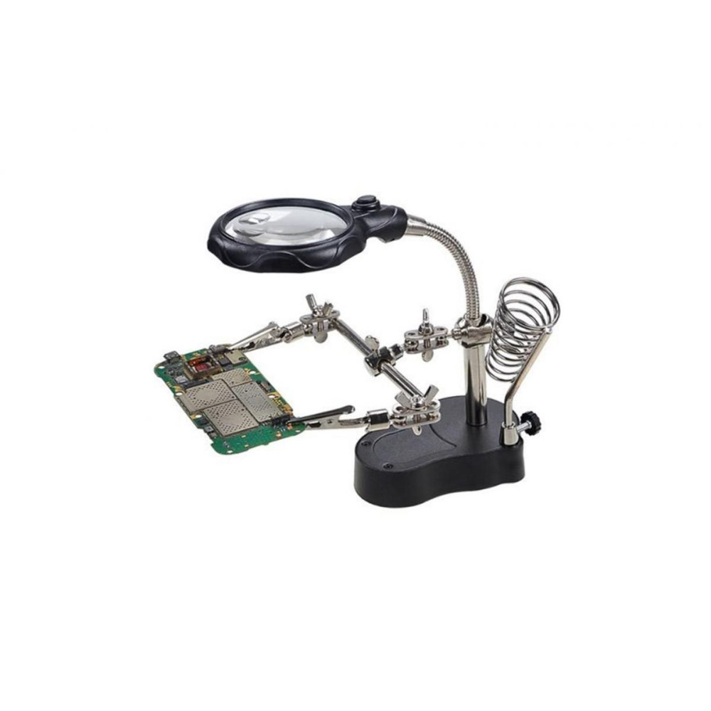 Nagyító lencse áramköri laptartó bilincsekkel és LED világítással