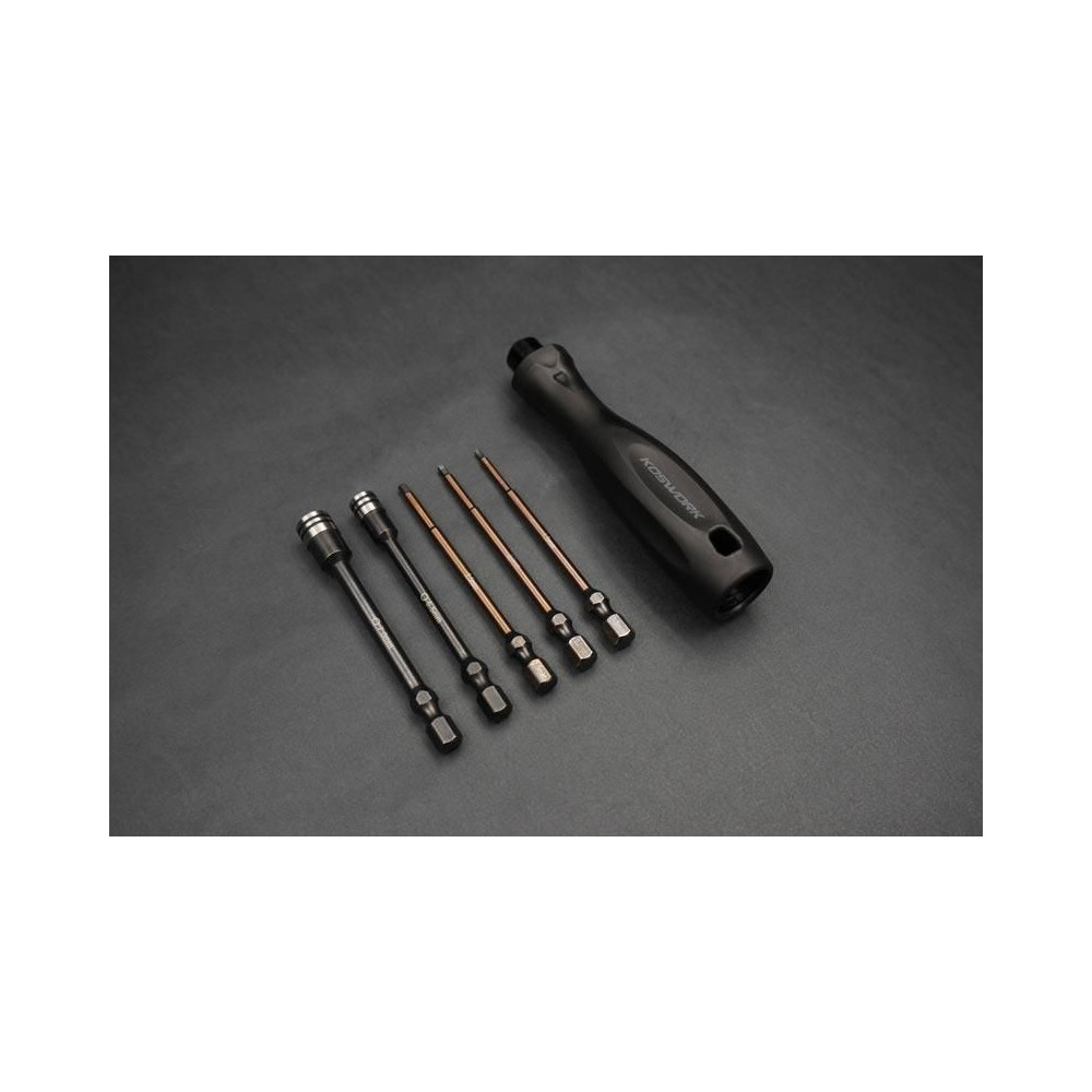 6,3 mm-es bitkészlet markolattal (1,5, 2,0, 2,5 mm-es imbusz és 5,5, 7 mm-es dugókulcs)