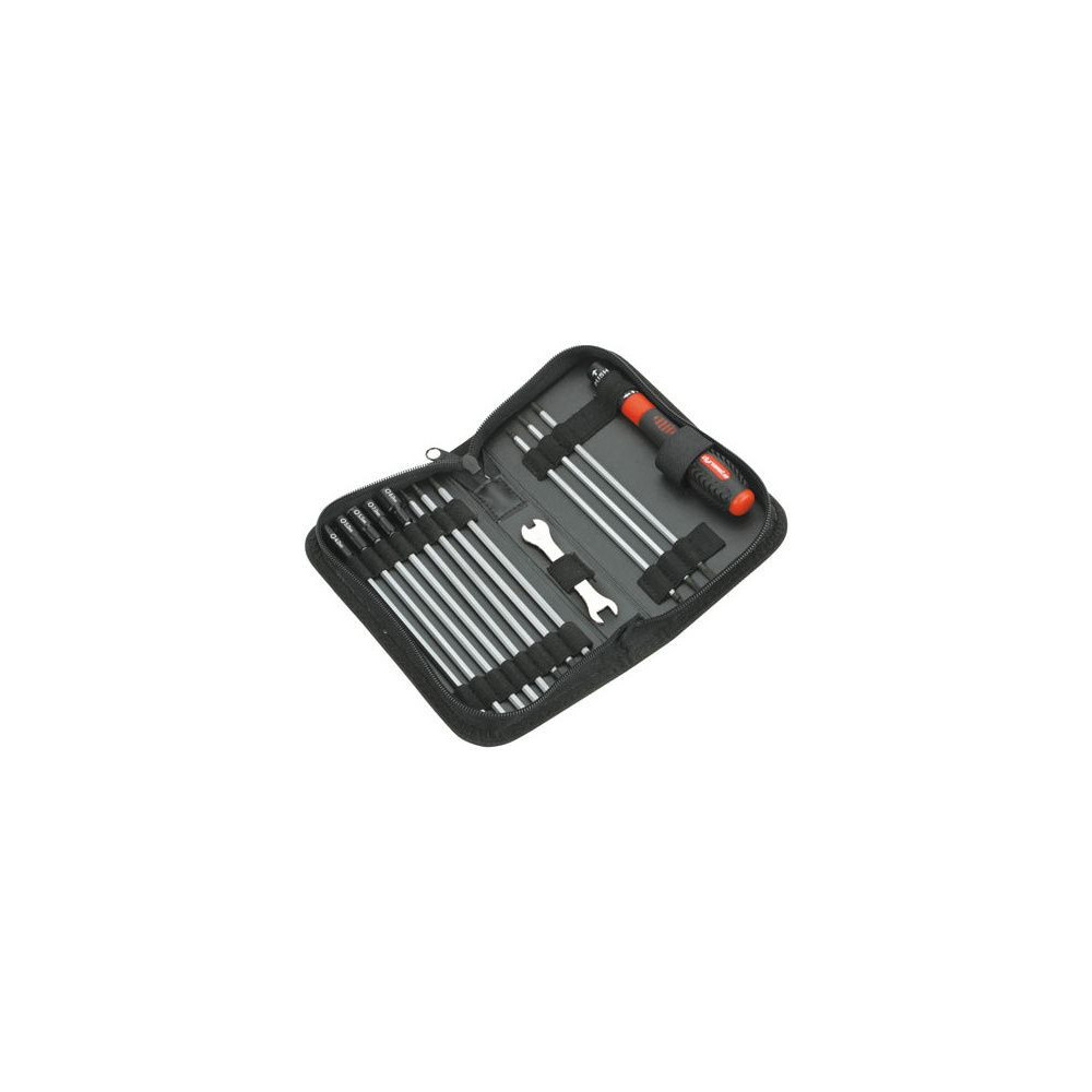 A Traxxas által a modellautóikban használt metrikus méretű csavarhúzók, dugókulcsok és csatlakozókulcsok készlete. A szerszámok egy racsnis funkcióval ellátott univerzális fogantyúba csúsztathatók. A hobbi használatra szánt készlet összesen 17 tartozékból áll.