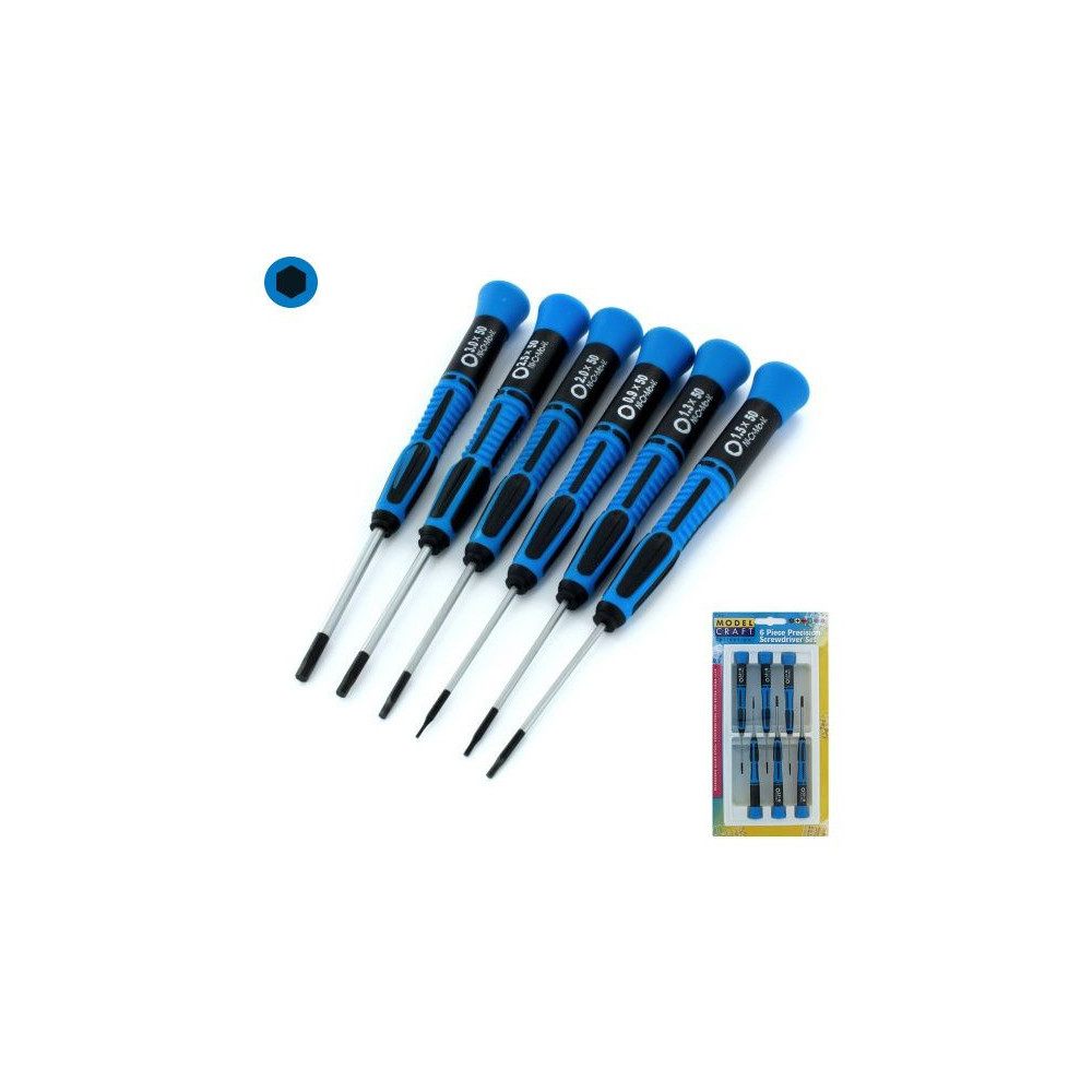Modelcraft Allen csavarhúzók (6 darabos készlet) rozsdamentes acélból, fekete krómacél kivitelű munkarésszel. A szárak átmérője megegyezik a csavarhúzó méretével, a szár hossza 50 mm. Méretek: 0,9 mm, 1,3 mm, 1,5 mm, 2,0 mm, 2,5 mm, 3,0 mm. Műanyag nyelek, 100mm hosszúságú és 12mm átmérőjű forgófejjel.