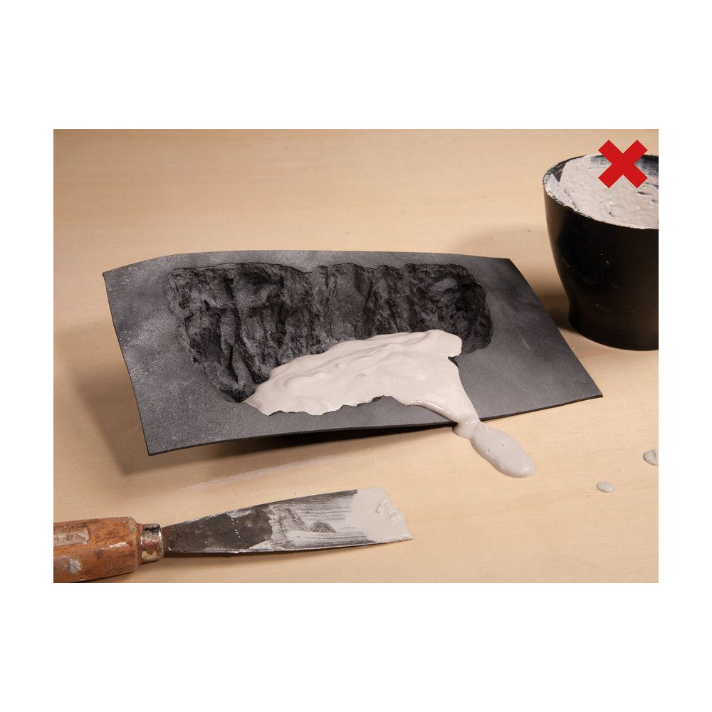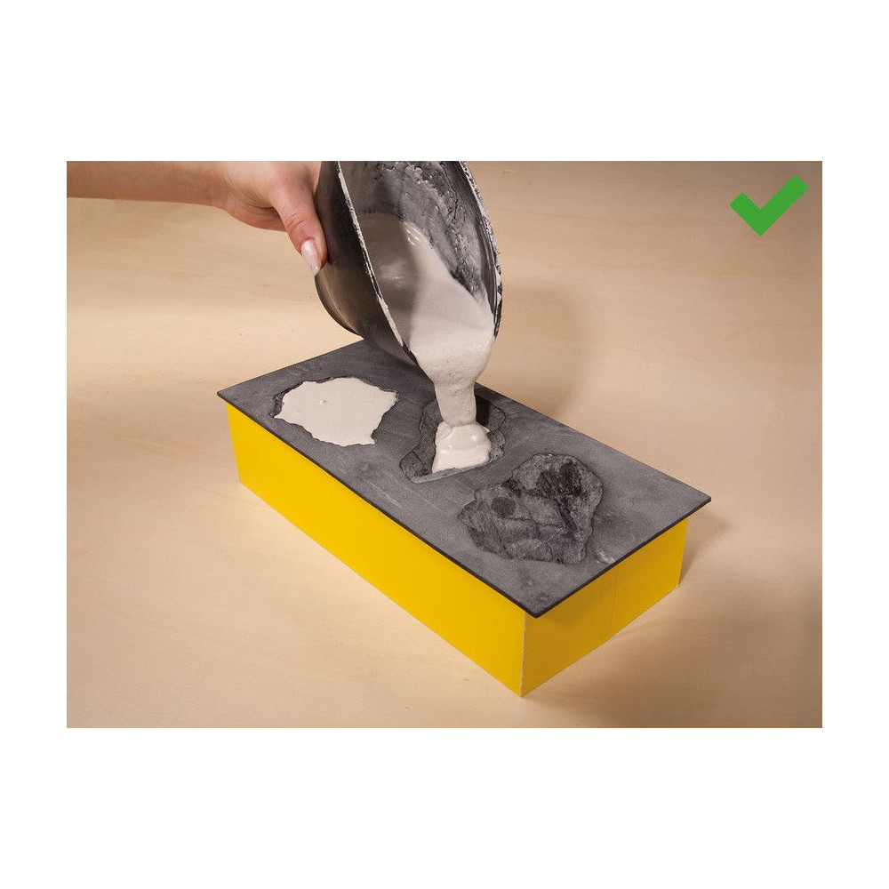 Odlievacia hmota sa mieša s vodou v pomere 3:1, následne sa odlieva do formy bez tvorby bubliniek. Po stvrdnutí má bielu farbu. Hmota má po zmiešaní s vodou objem cca. 800 ml.