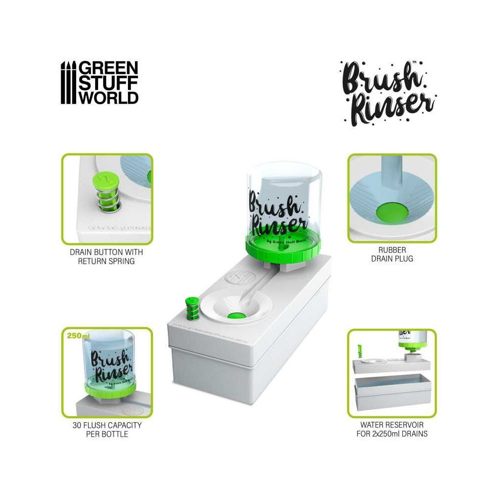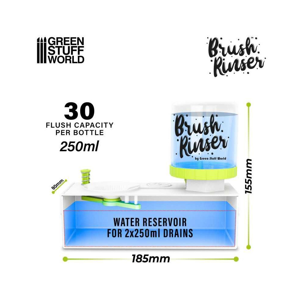 Čistič štetcov obsahuje 250 ml fľašu, ktorá vám umožní 30-násobné prepláchnutie. Zásobník na vodu pod oplachovačom má kapacitu na 2 fľaše s objemom 250 ml pred čistením a vyprázdnením znečistenej vody.