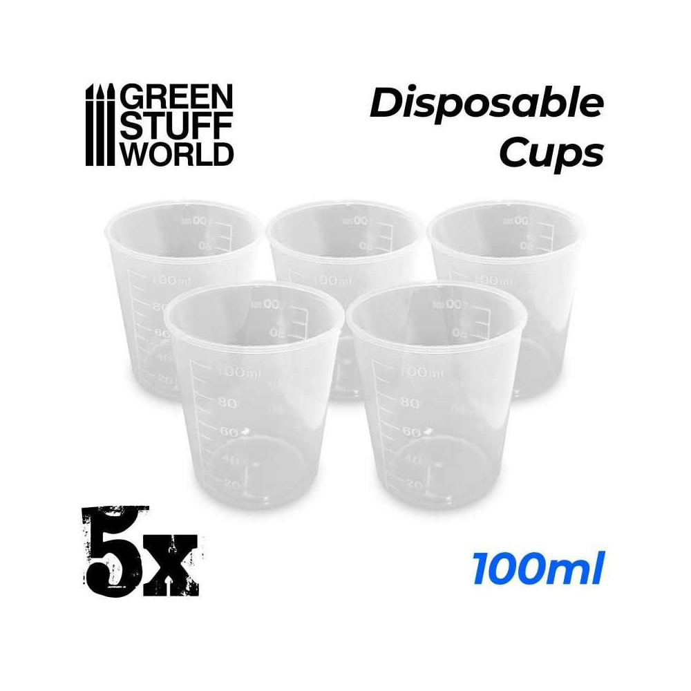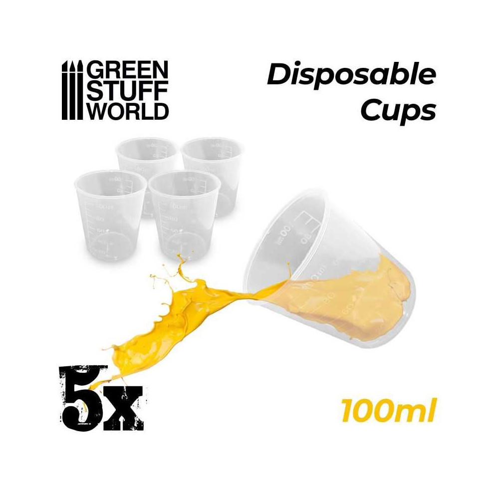 Jednorazové odmerky na miešanie farieb a iných látok. Každých 10 ml sú meracie čiary, ktoré pomáhajú určiť presné množstvo.