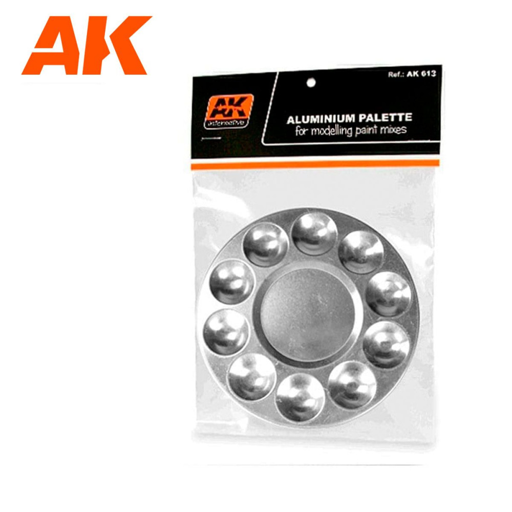 Užitočná večná pomôcka, ktorá by nemala chýbať na žiadnom stole; hliníková paleta s desiatimi jamkami na akýkoľvek typ výrobku súvisiaceho s farbami: emaily, akrylové farby, laky, alkohol, acetón alebo akýkoľvek iný typ riedidla. Jej desať jamiek a centrálna plocha nám umožňujú vytvárať rôzne zmesi súčasne, čo z nej robí ideálny nástroj pre modelárov; a keďže je hliníková, vydrží akýkoľvek použitý maliarsky výrobok!