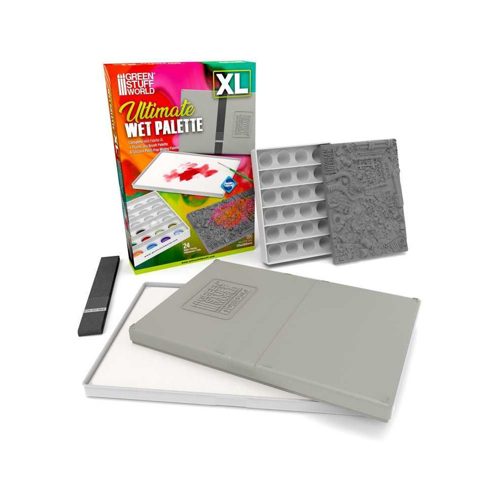 Green Stuff World Ultimate Wet Palette XL + Drybrush Texture Palette + Push-Pop Mixing Palette