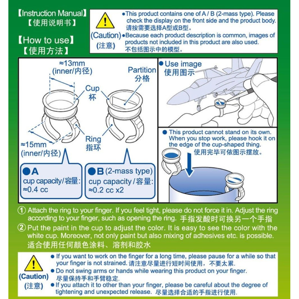 A praktikus gyűrűs festéktartót azoknak a modellezőknek tervezték, akik maximális precizitást igényelnek. Azáltal, hogy a festék közvetlenül az ujjra kerül, minimalizálható az ecset és a festett felület közötti távolság, ami jelentősen javítja a részletes munka feletti kontrollt.