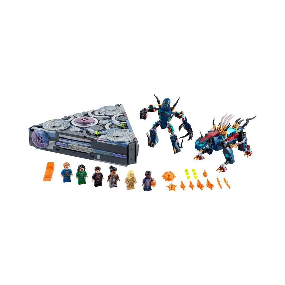 - Tartalmaz 6 minifigurát - Makkari, Ikaris, Thena, Sersi és az exkluzív Druig és Phastos -, valamint 2 Deviants akciófigurát, köztük a vezetőjüket, Kroót, az űrhajót, fegyvereket és kiegészítőket.