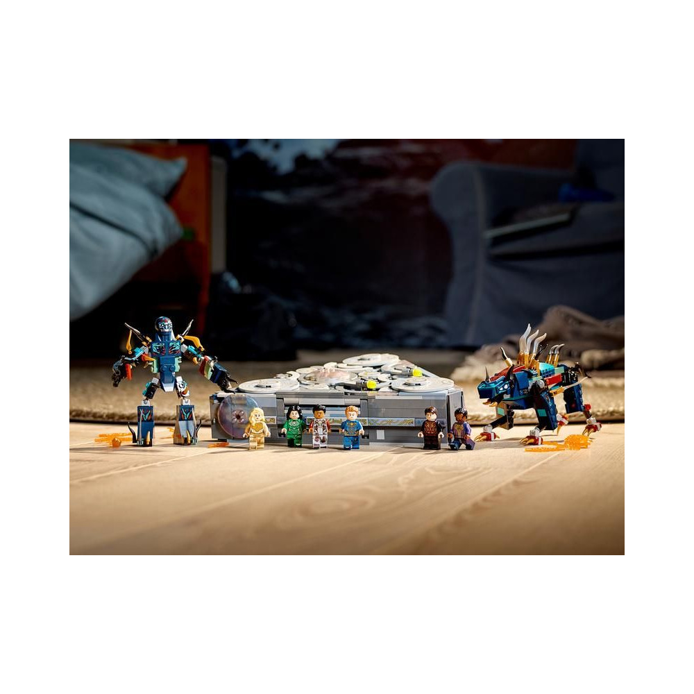 - Ez a könnyen összerakható modell egyszerű és könnyen érthető utasításokat tartalmaz, amelyek segítségével a gyerekek késlekedés nélkül építkezni, játszani és fantáziálni fognak az Eternals-szal.