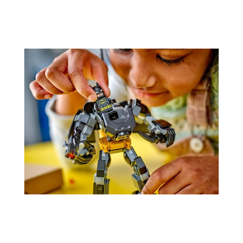 A gyerekek a LEGO® Batman minifigurát a robotpáncél kinyitható pilótafülkéjébe helyezik. A robotfigura egy megépíthető Batarang™-ot tart a kezében, a karján pedig egy kilövő van. A hátán egy jetpacket találsz, amelyet egy kétrészes köpeny takar, és tetszés szerint mozgatható. A minifigura egy szövet köpenyt visel, és egy másik Batarangot tart a kezében, amely a robotpáncél jobb karjába illeszthető. Az ízületekkel ellátott karokkal, lábakkal és kezekkel a Batman- és szuperhősfigurák rajongói végtelen akciódús csatákban vehetnek részt ezzel a készlettel. A gyerekek ezt a Batman-készletet más LEGO téglából készült robotpáncélokkal (külön megvásárolható) kombinálhatják, így még több játéklehetőséget kapnak. Az építők zoomolhatnak, forgathatják a modelleket 3D-ben, és nyomon követhetik a fejlődésüket az intuitív LEGO Builder alkalmazással, ami még több digitális szórakozást nyújt.