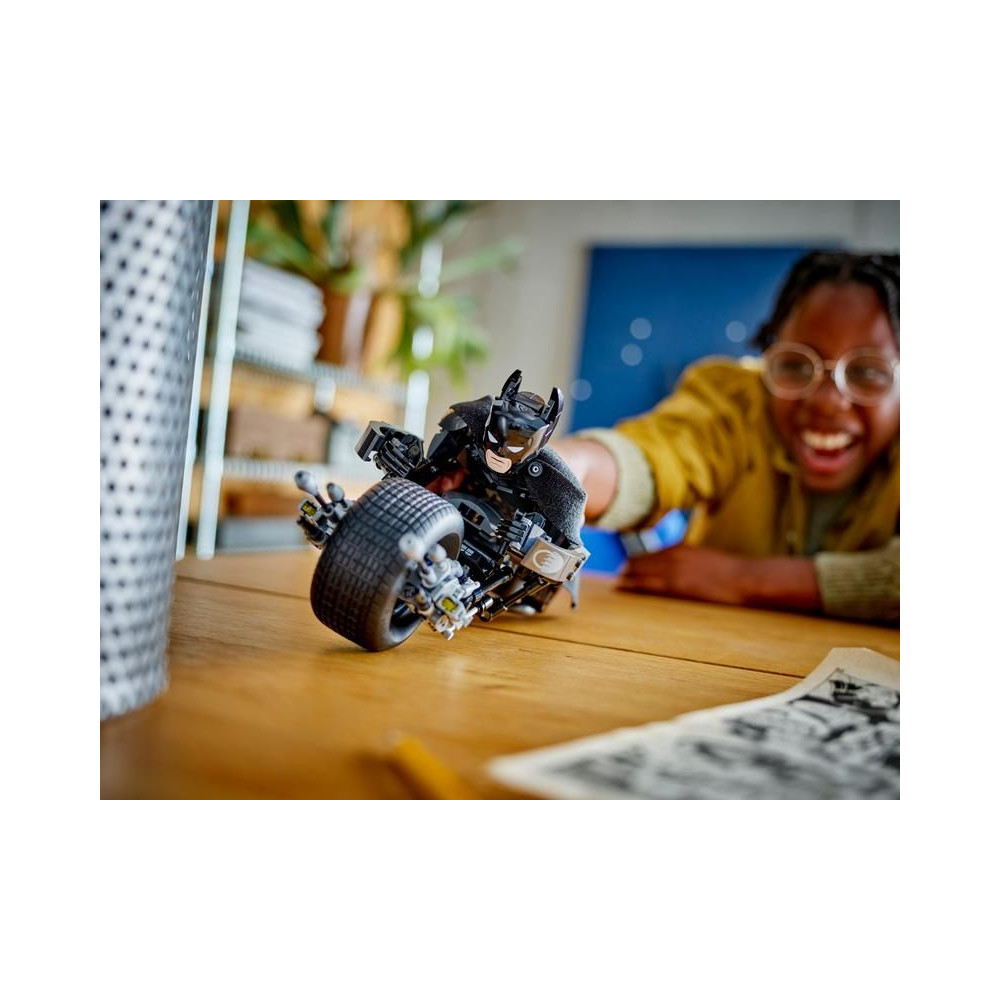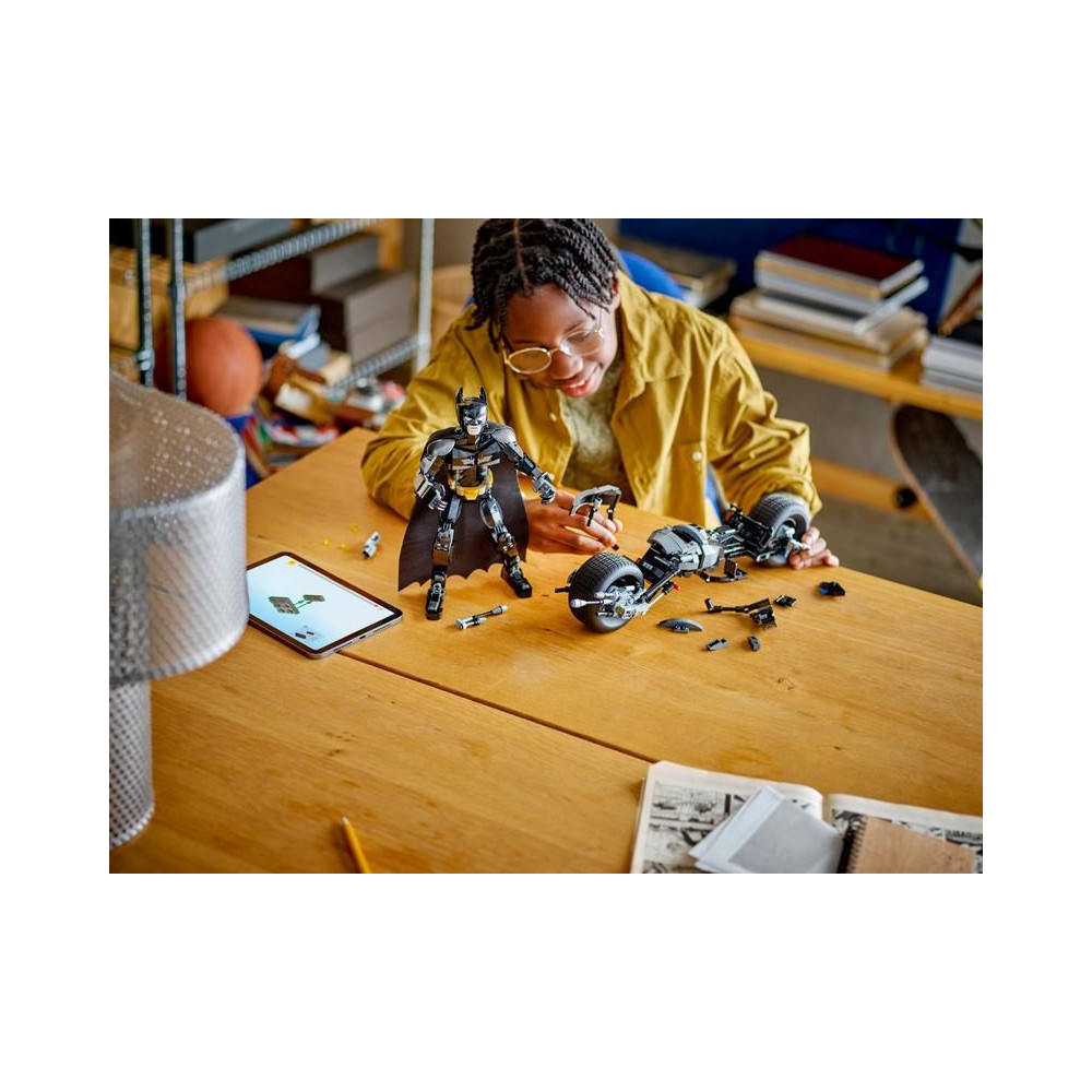 A mozgatható karok, kezek, csípő és lábak lehetővé teszik a gyerekek számára, hogy a figurát menő, dinamikus pózokba állítsák. Ezáltal a szuperhős figura építésre, játékra és kiállításra is alkalmas. A hitelesen részletezett Batman akciófigura készlet egy vagány, elegáns Bat-Pod motorkerékpárt tartalmaz 2 kilövővel. A még több digitális szórakozás érdekében az építők 3D-ben zoomolhatják és forgathatják az építőkockákat, és nyomon követhetik a fejlődésüket a szórakoztató és intuitív LEGO Builder alkalmazás segítségével.