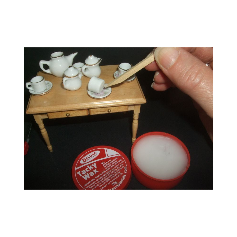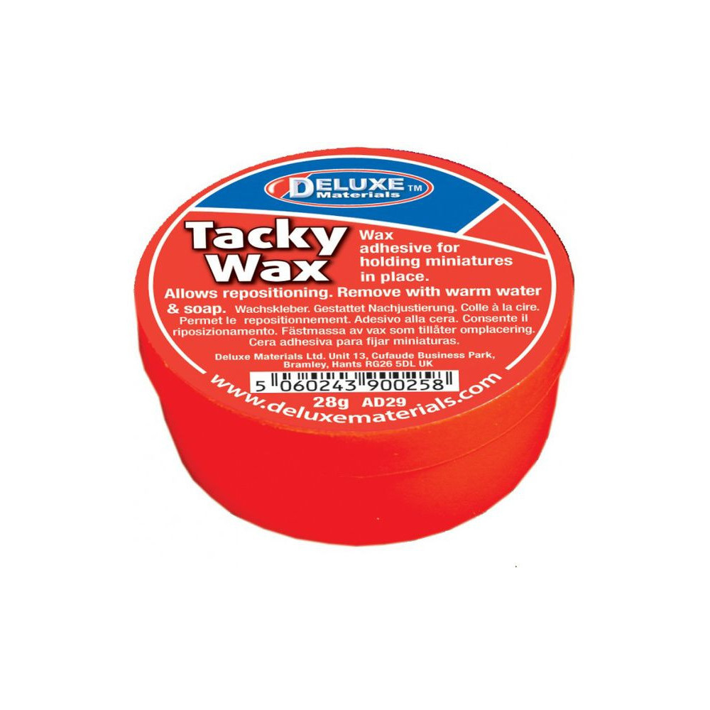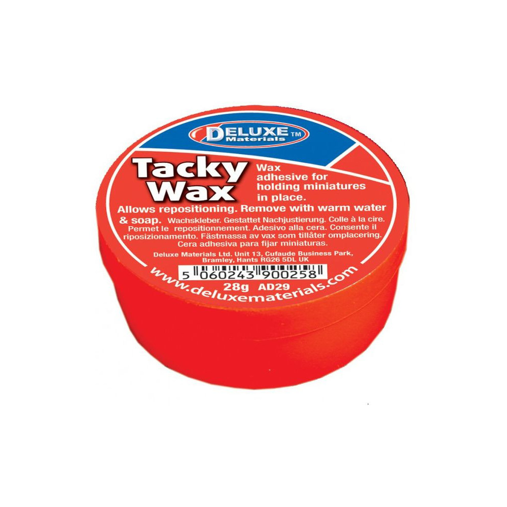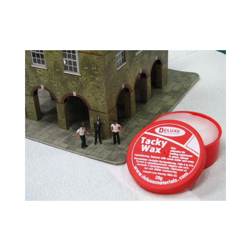 A Tacky Wax egy ragasztóviasz. Használható kisebb alkatrészek ideiglenes rögzítésére, figurák rögzítésére a modellvasutaknál. A speciális összetétel garantálja a tartós ragasztást, így a figurák többször is áthelyezhetők anélkül, hogy új ragasztót kellene alkalmazni.
