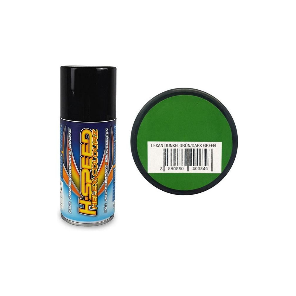 A H-Speed sötétzöld akril sprayfesték sokféle anyaghoz alkalmas, beleértve a lexán karosszériát is. Előnyei a rövid száradási idő, a kiváló fedés és a karcállóság. Tartalom 150 ml.