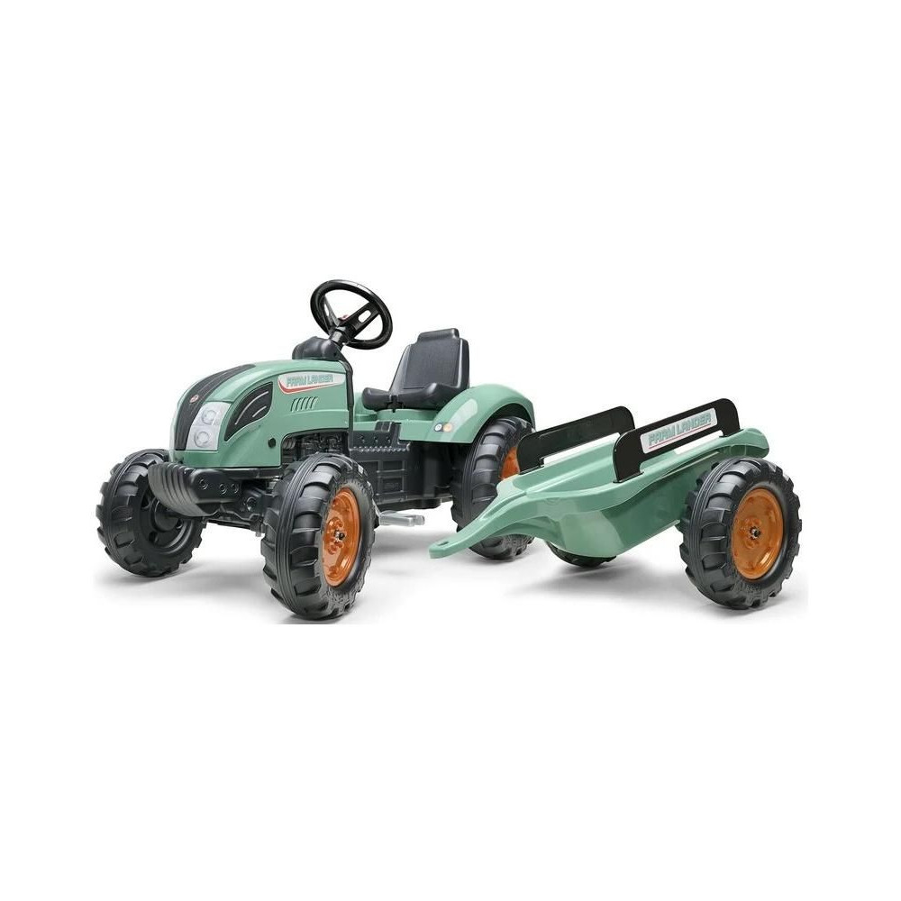 Farm Lander taposó traktor levehető mellékvágánnyal, a francia FALK gyártótól. Kiváló minőségű műanyagból készült, a biztonságot szem előtt tartva. Könnyen kezelhető és stabil. Funkcionális kürt a kormánykeréken. 3 és 7 éves kor közötti gyermekek számára alkalmas.