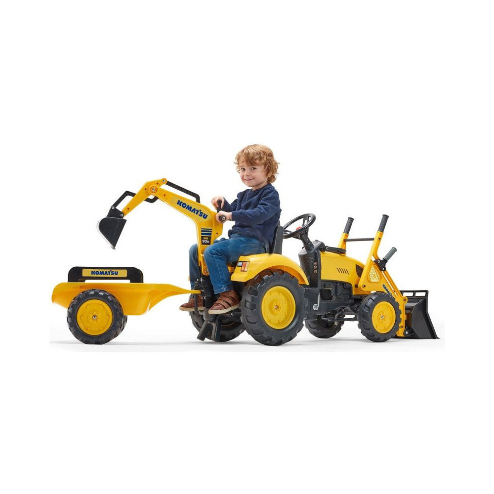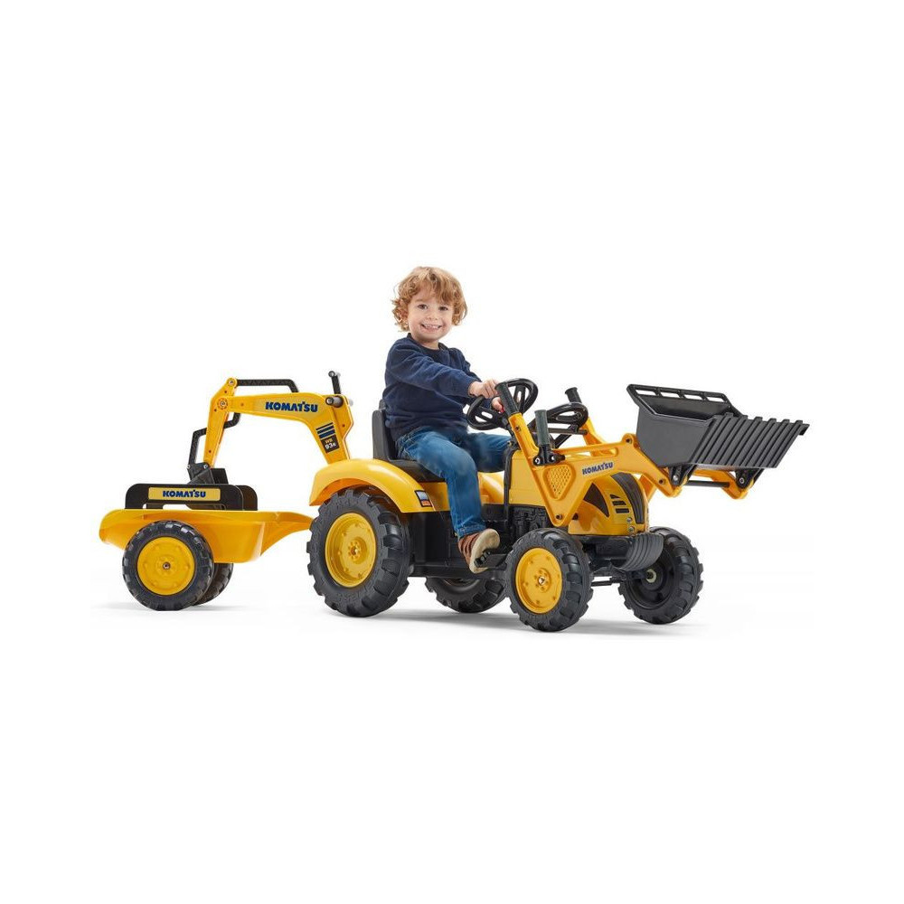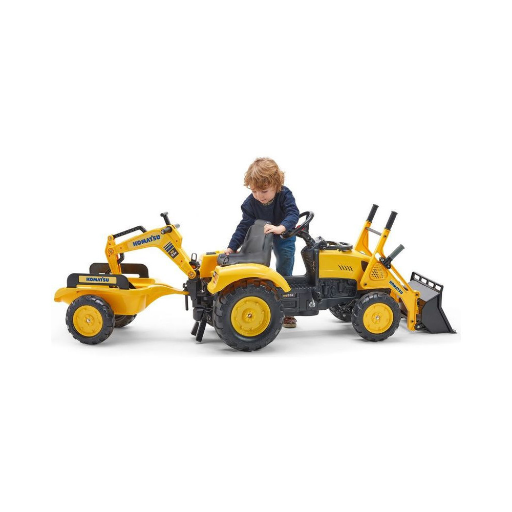 FALK - A Komatsu pedáltraktor rakodóval, kotróval és mellékvágányokkal egy valódi traktor másolata.