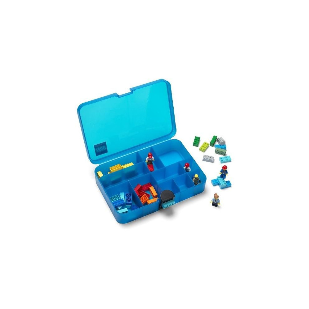 LEGO tárolódoboz rekeszekkel a kedvenc LEGO minifiguráid vagy LEGO tégláid számára. Méretek 178 x 267 x 66 mm. A dobozok egymásra helyezhetők, így nemcsak gyerekek, hanem felnőttek is használhatják. Záró klipsz, mint egy Lego tábla.