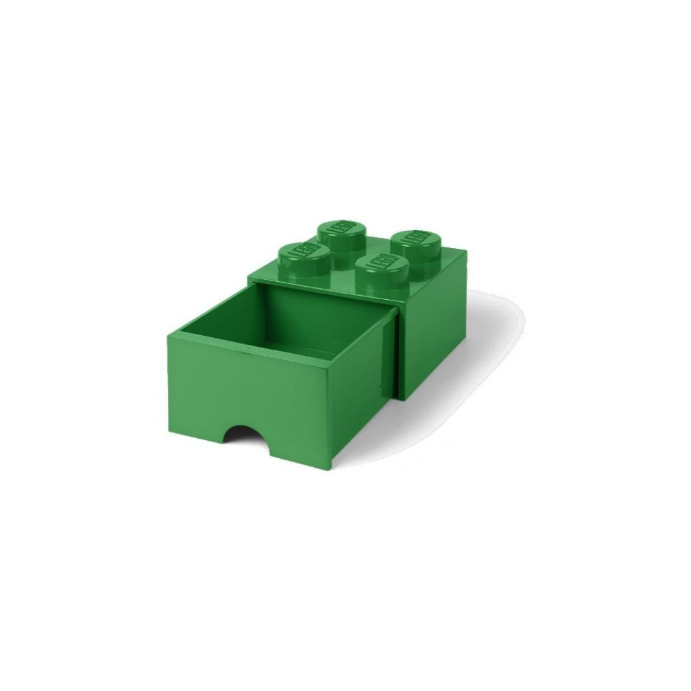 LEGO tárolódoboz fiókkal 250x250x180mm - sötétzöld