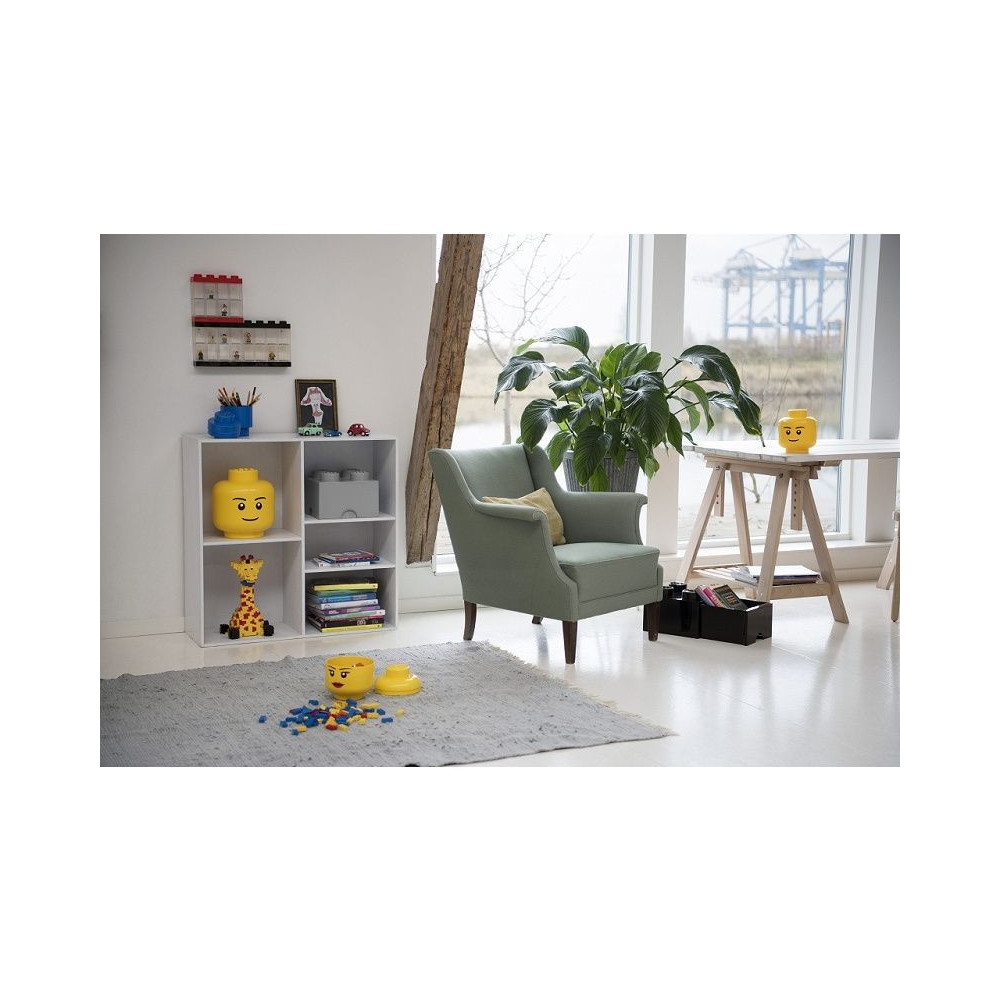 Nagyszerű, többcélú LEGO fej , amely a LEGO téglák tárolására szolgáló dobozként is szolgálhat. Kisebb játékokat, édességeket is tárolhatsz benne, de akár óriási LEGO épületeket is készíthetsz belőle. Egy ilyen segítővel a takarítás is játék lesz. Tartós műanyagból készült, és más tárolódobozokat is egymásra rakhatsz a fej formájára, így különböző arcokból álló kiállítást hozhatsz létre, amivel lenyűgözheted barátaidat! A doboz két részből áll.