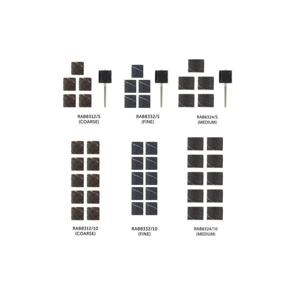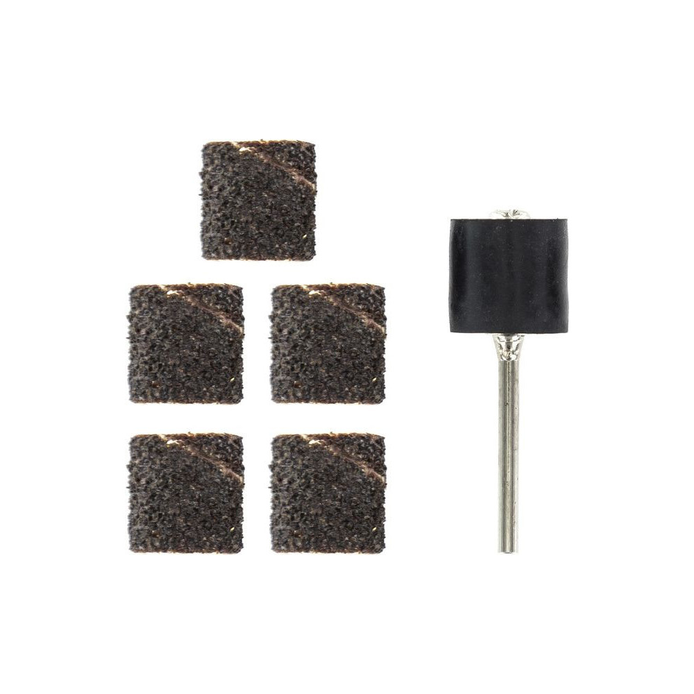 Rotacraft csiszolóhengerek P120 (5db) stopperrel (5db a csomagban) laminált, műanyag és fa munkadarabok befejező munkáihoz. A ragasztott szilíciumkarbid szemcsék nagy hatékonyságúak, csiszolásra, sorjázásmentesítésre, utómunkálatokra és polírozásra alkalmasak.