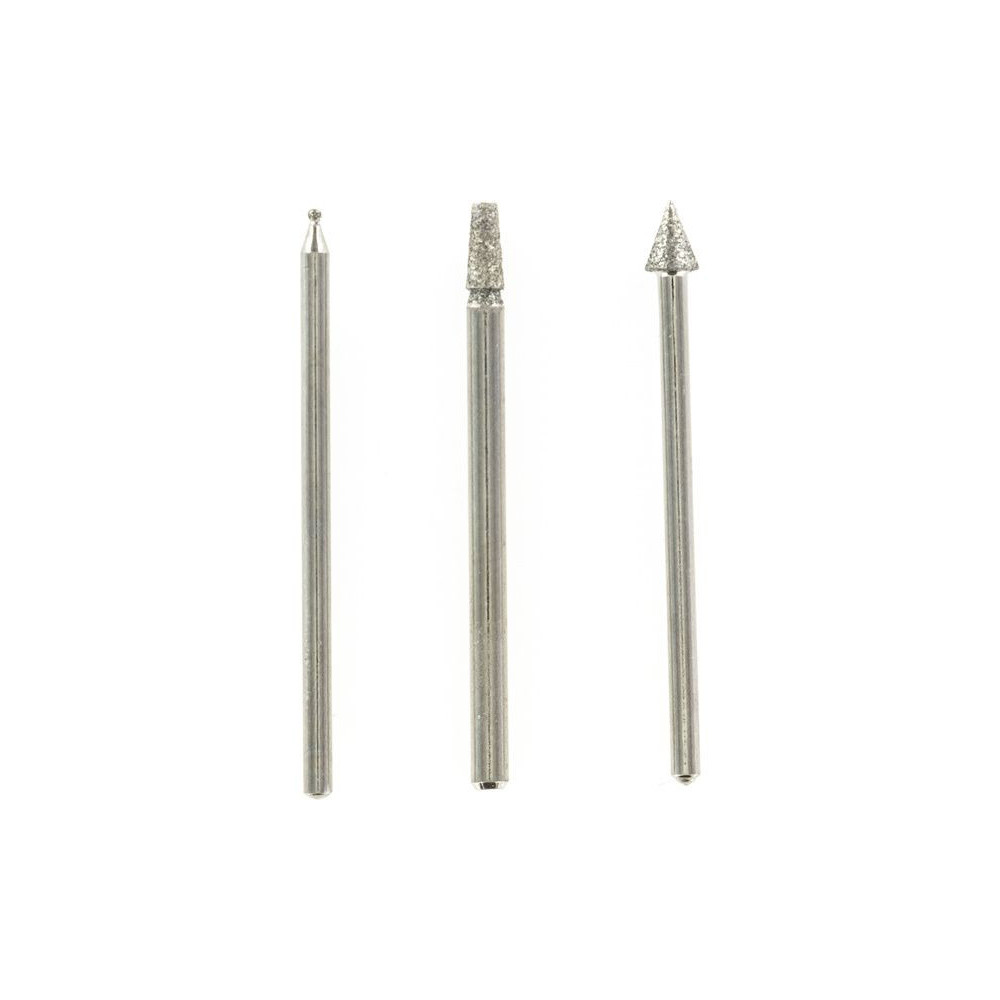 Rotacraft gyémánt gravírozó szerszámok (3db) - golyós, kúpos és kúpos kúpos, fogószár 2,35mm. Alkalmas kerámiához, fémhez, műanyaghoz, fához és üveghez. Ideális hobbi, kézműves, elektronikai, restauráláshoz, barkácsoláshoz és felújításhoz.