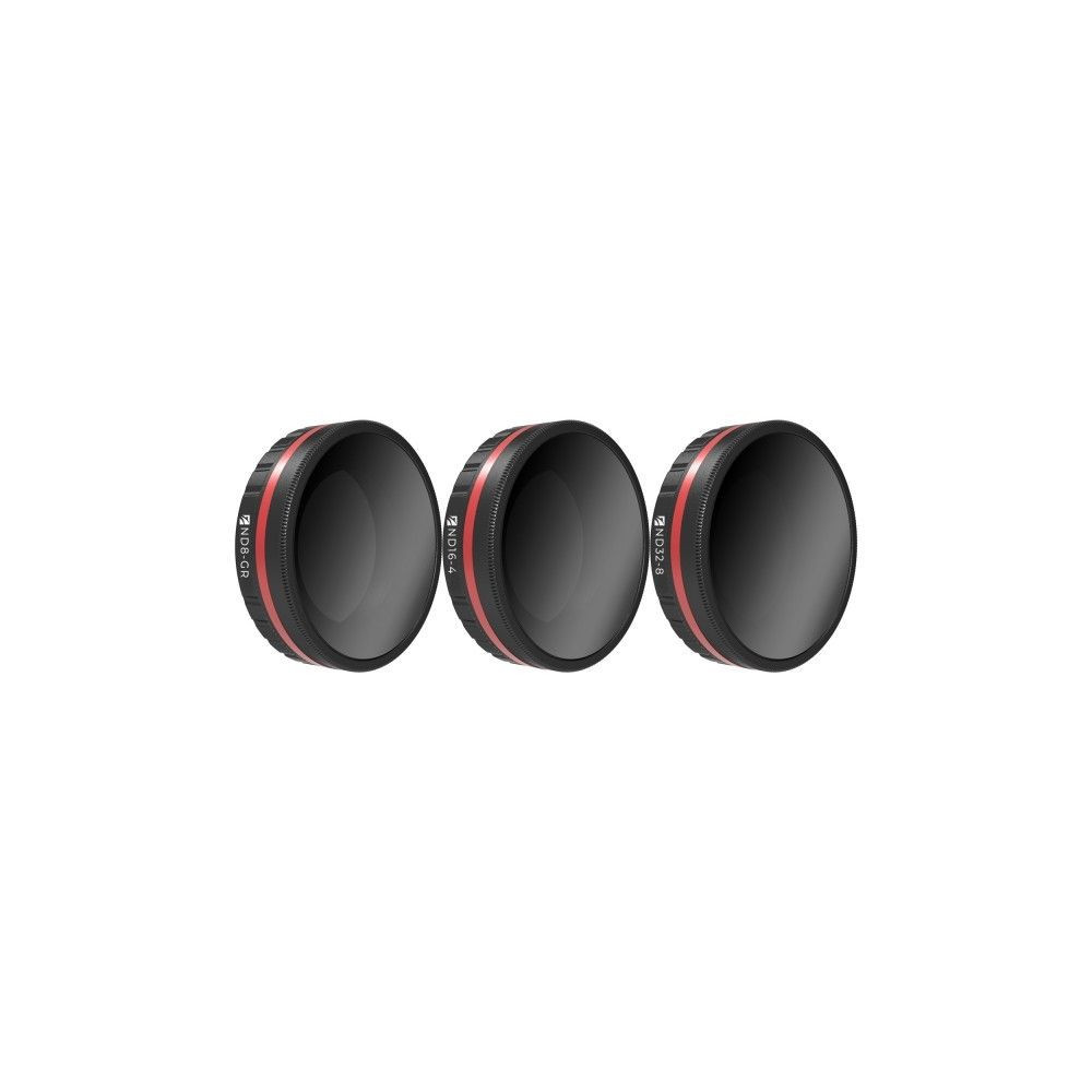 Három Freewell szűrőből álló készlet a DJI Osmo akciókamerához (1. generáció). A készlet ND8-GR, ND16-4, ND32-8 szűrőket tartalmaz.
