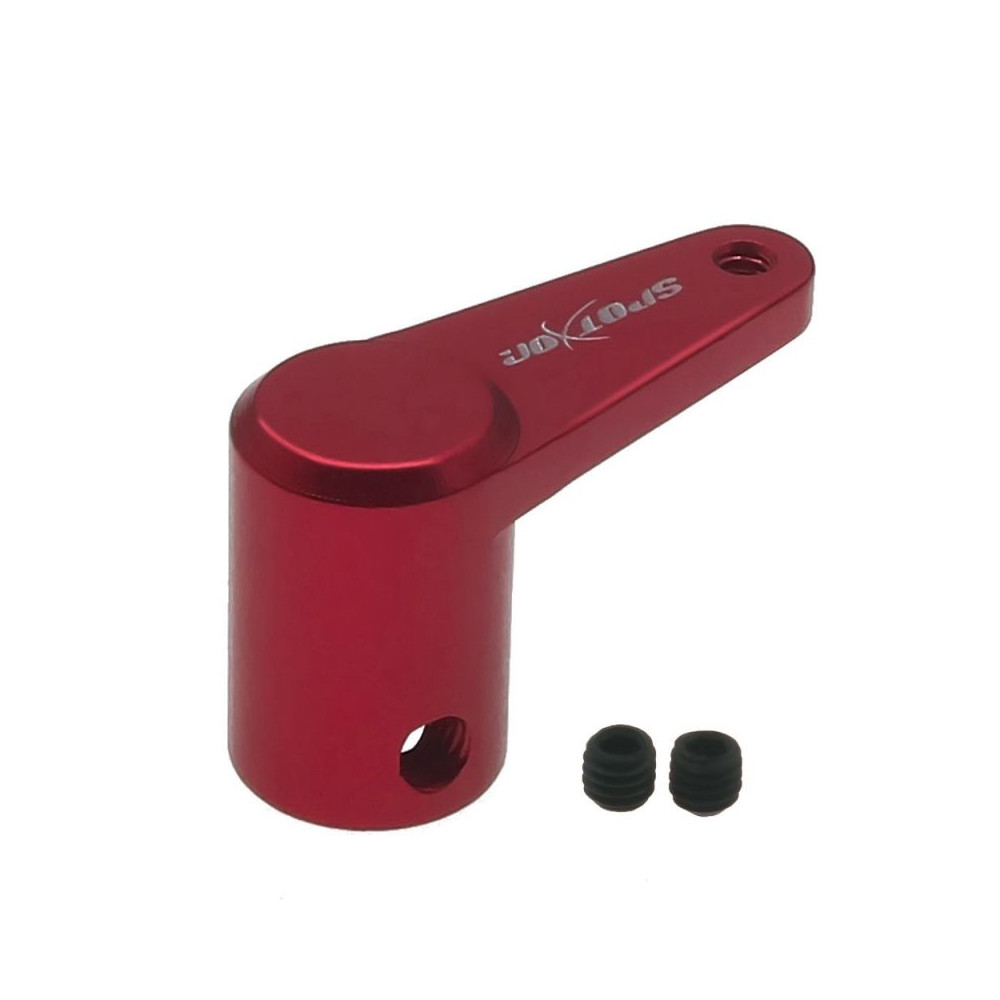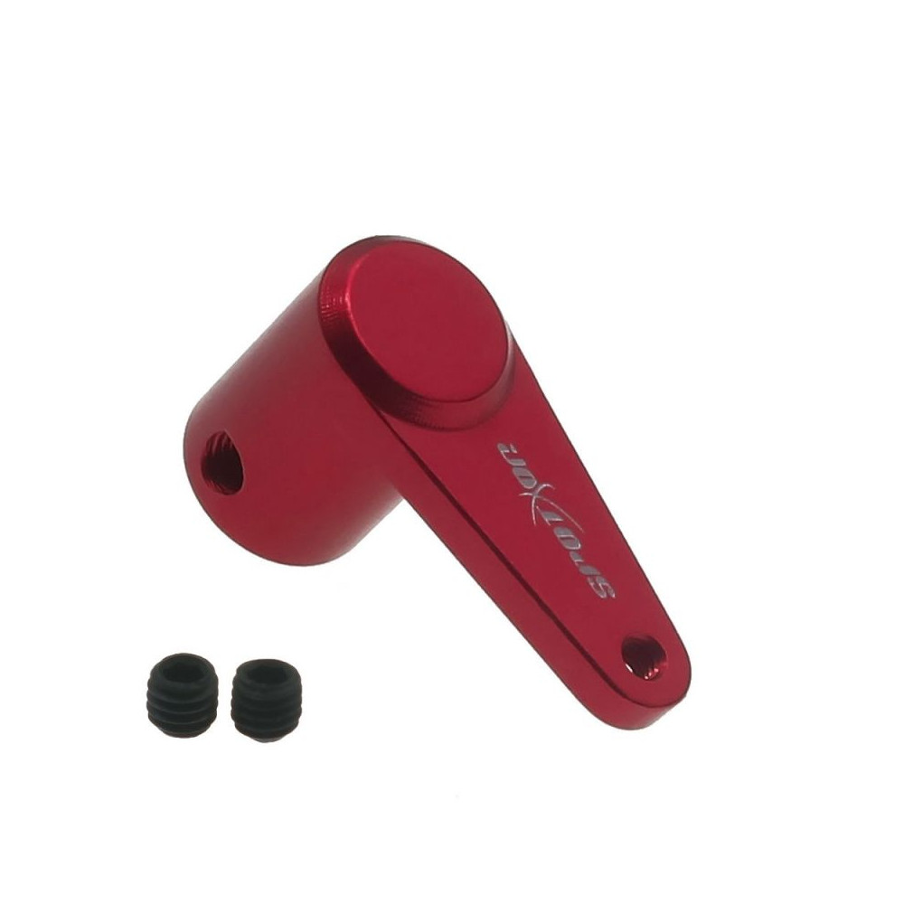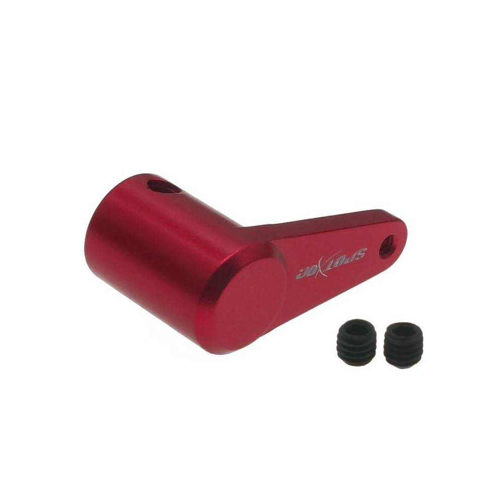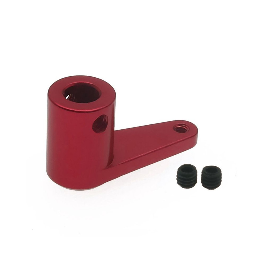 Alumínium kar a karburátor gázpedál vagy fojtószelep vezérlőtengelyére csavarozáshoz. Belső átmérő 4,8 mm, teljes magasság 14 mm, tengelytávolság (kar hossza) 16,5 mm. Két csigával egymáshoz rögzítve. Piros színű.