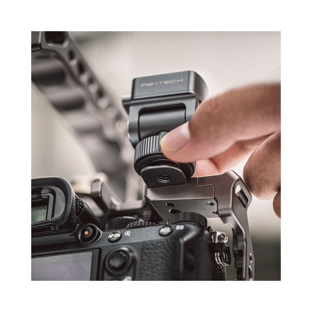 Több lehetőség a felvételkészítés során. A PGYTECH márkájú tartó számos kamerával, tartozékkal, monitorokkal és állványokkal kompatibilis. 360°-ban forgatható, és a dőlésszöge 180°-ig állítható. Páratlan stabilitást is biztosít, így nem kell aggódnia az eszközök biztonsága miatt. Akadálymentesen használhatja az Ön által választott tartozékokat. A tartó adapterrel rendelkezik, amely lehetővé teszi egy monitor csatlakoztatását. Ezenkívül rendelkezik egy 1/4"-20-as menetes furattal és egy 1/4"-20-as csavarral, így például a fényképezőgépet vagy az okostelefont állványra is felteheti.