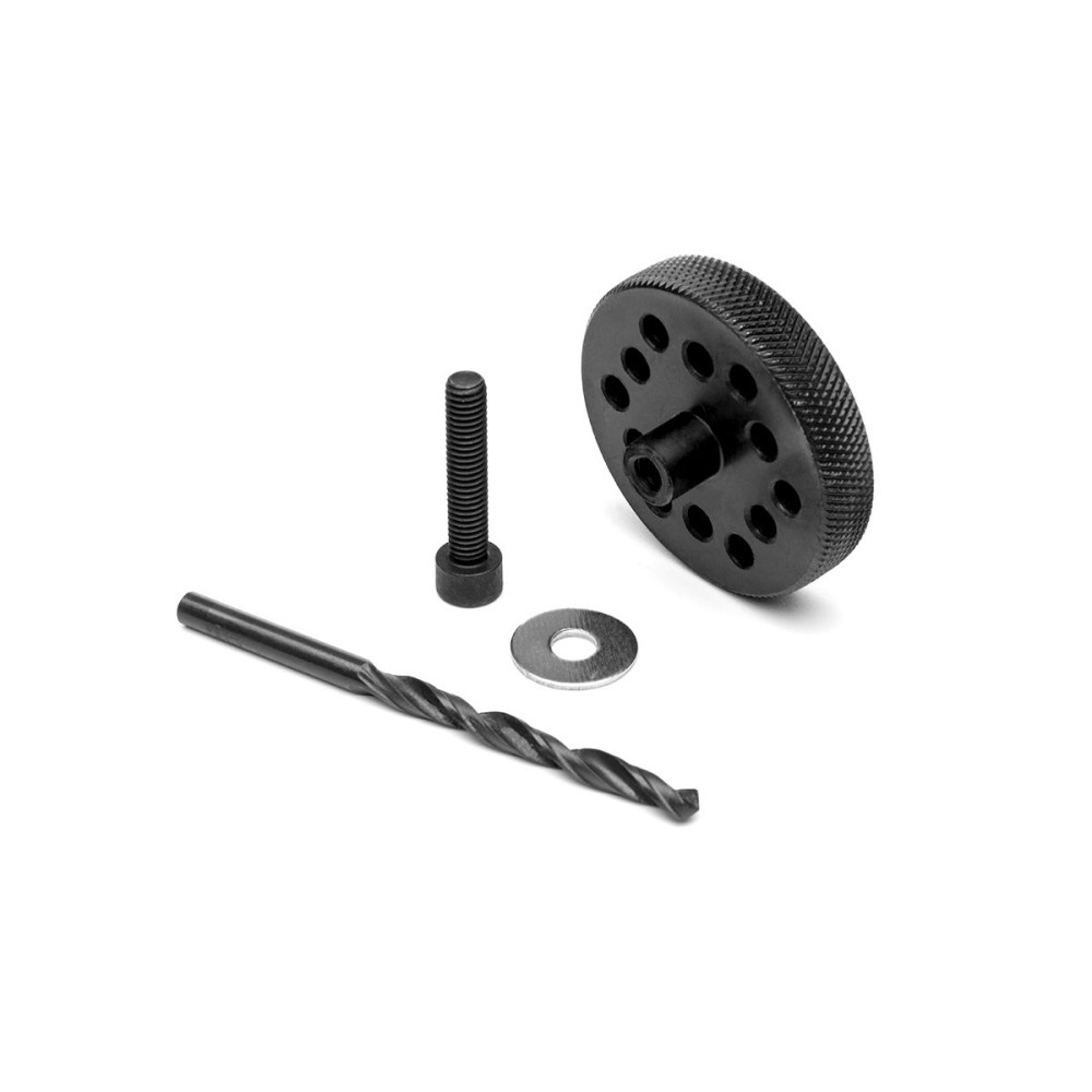 Fúrószerszám a propellert tartó csavarok furataihoz. GP 88ccm ; GP 123ccm ; DLA 116ccm motorokhoz. A GP 178ccm-hez is használható - A fúrás után a propellerben lévő lyukakat 6 mm átmérőjűre kell növelni.
