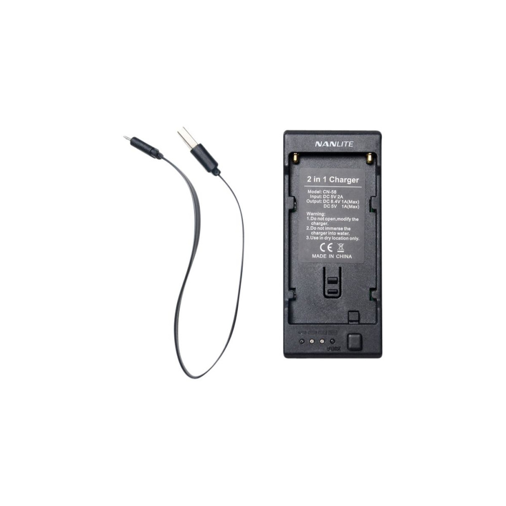 Nanlite CN-58 2in1 akkumulátortöltő NP/LP-E6 akkumulátorokhoz