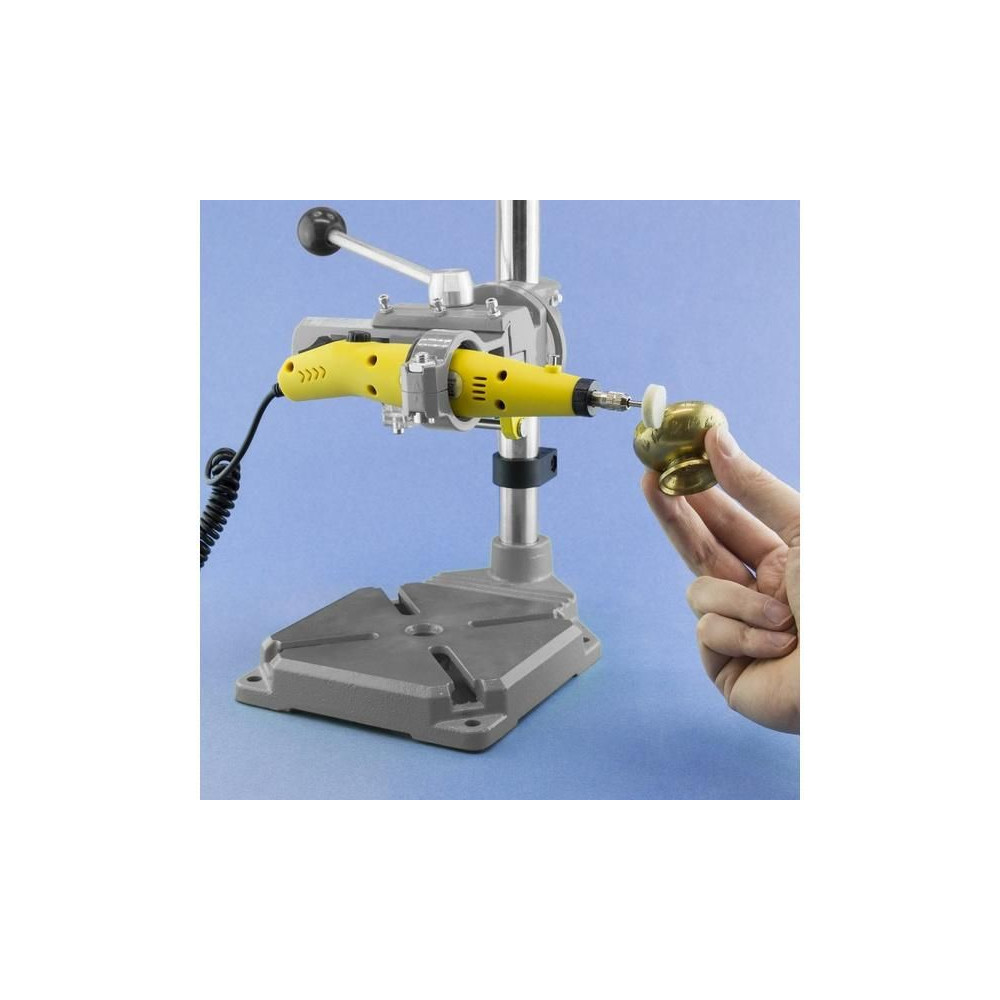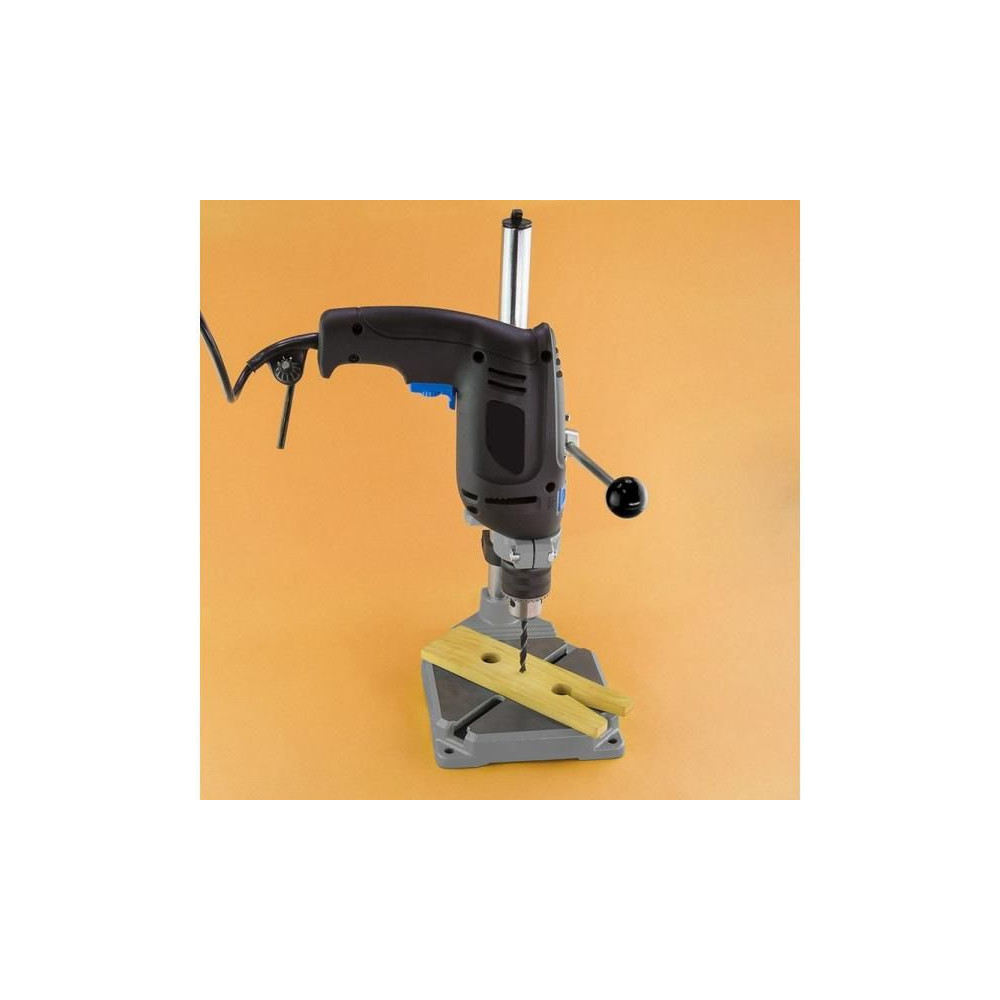 Rotacraft fúróállvány forgatható tartóval, fa, műanyag, fém és áramköri lapok precíziós fúrásához, valamint a marógép oldalra szorításához csiszoláshoz és polírozáshoz. SH-RC18EUK és SH-RC200X szerszámokhoz. Oszlop hossza 400mm, átmérő 25mm, alap 160x160mm, fúrási mélység 60mm, tartó elforgatási szöge 90°.