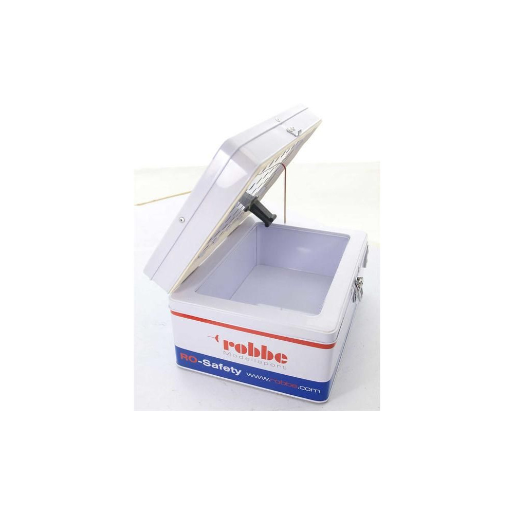 A biztonsági fém tokot úgy tervezték, hogy minimalizálja az akkumulátorok töltésével és tárolásával kapcsolatos kockázatokat. Biztonsági átjárók a töltőkábel bevezetéséhez. Méretek: 300x220x160 mm. Hely 2db 6S LiPo akkumulátor számára.