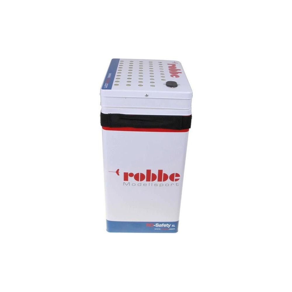 A biztonsági fém koffer, amelyet úgy terveztek, hogy minimalizálja az akkumulátorok töltésével és tárolásával kapcsolatos kockázatokat. Biztonsági átjárók a töltőkábel bevezetéséhez. Speciális szigetelés és nem gyúlékony szűrő a nyomáscsökkentés és a füstök minimalizálása érdekében. Méretek: 300x220x455 mm. Hely 2db 6S LiPo akkumulátor számára.
