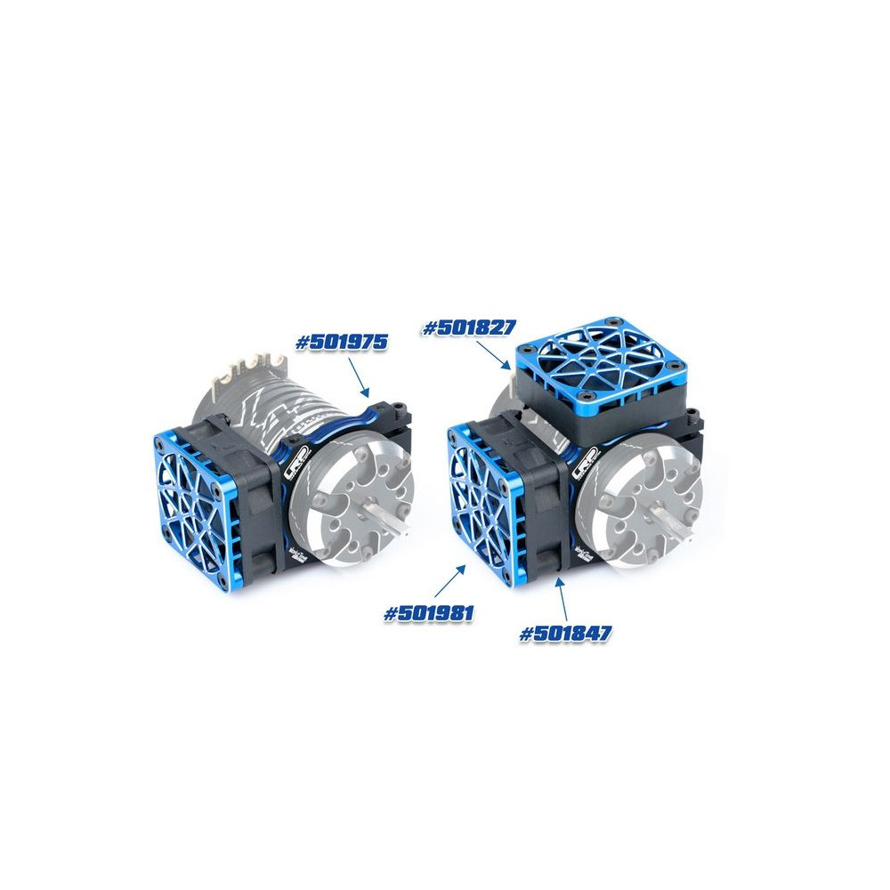 Az 1/8E motorhűtőrendszer a WorksTeam alumínium ventilátorkonzolunkból (L501975), a WorksTeam SuperHighRev. motorventilátorokból (L501847 / L501827) és a hozzá illő WorksTeam alumínium biztonsági hálóból (L501981) áll, hogy a motort minden körülmények között hűvösen tartsa.